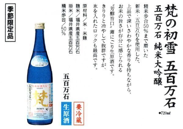 梵 初雪 五百万石 しぼりたて 純米大吟醸生原酒 720ml 2310円(即決) |