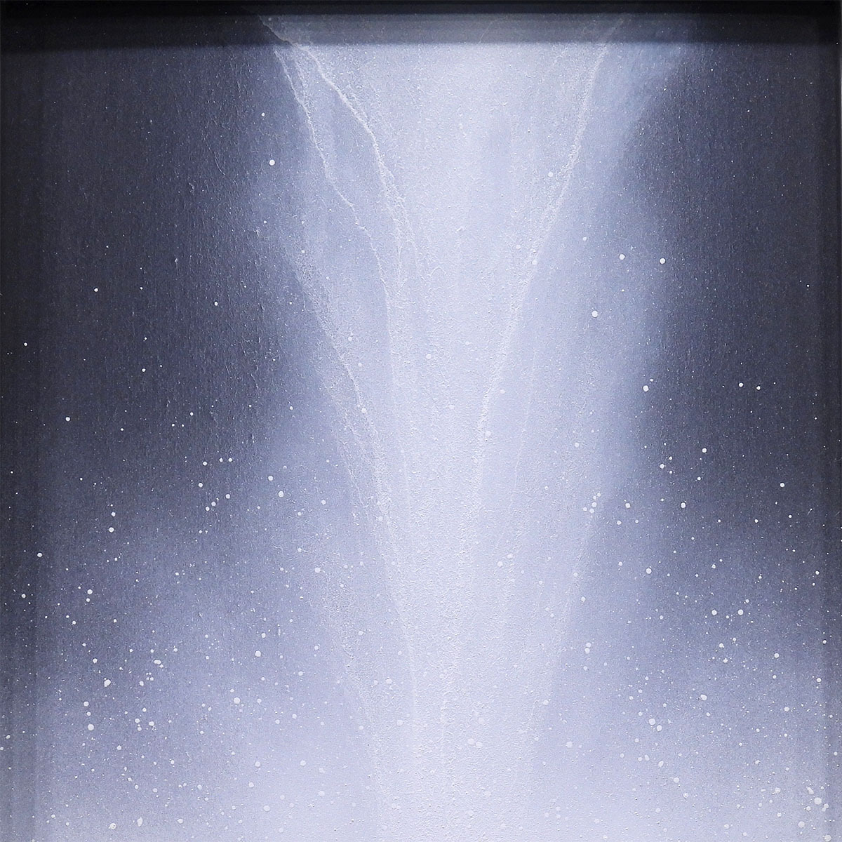 | 静かな白の世界に、ただ滝だけが流れている。 余分なものを一切描かず、「水の落ちる瞬間」だけを捉えたこの作品は、見ているうちに自分の中のざわつきが静かになっていくような不思議な力を持っている。 代表作であるウォーターフォールは、自然をただ写すのではなく、水が落ちる音、空気のひんやりとした感覚までをも絵に閉じ込めるように描く。 白い絵なのに、深い奥行きを感じるのは、紙本に絵具を滲ませ、重ね、乾かすという日本画特有の技法が生み出す“にじみ”の美しさによるものだ。 この小さな作品の中に、千住が何年も描き続けてきた滝の世界が凝縮されている。 美術業界が次の文化勲章受章者として最も期待している作家でもある。