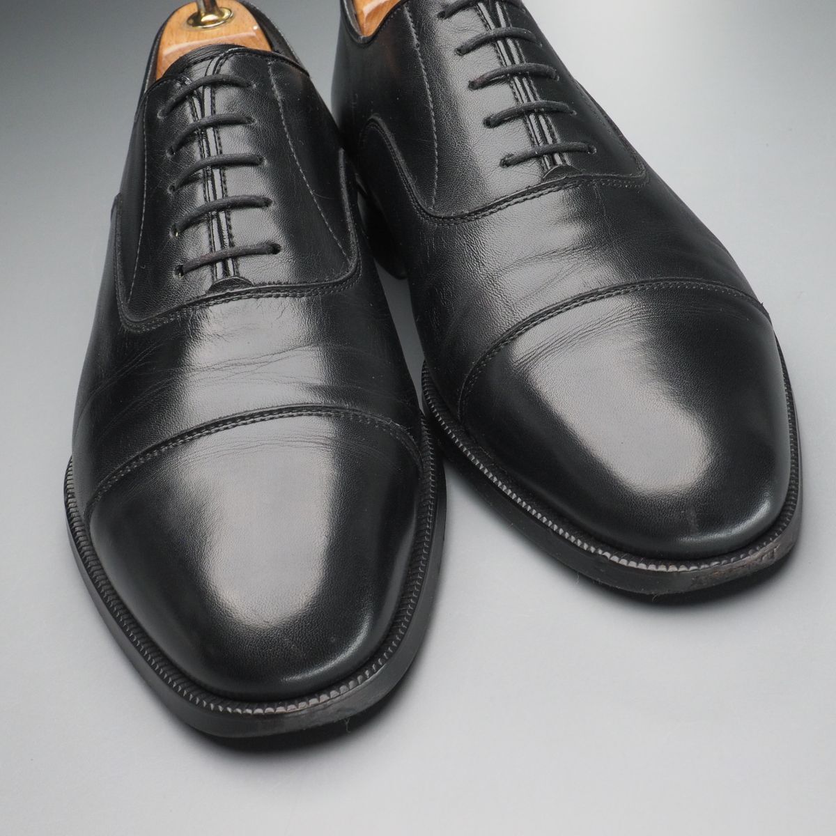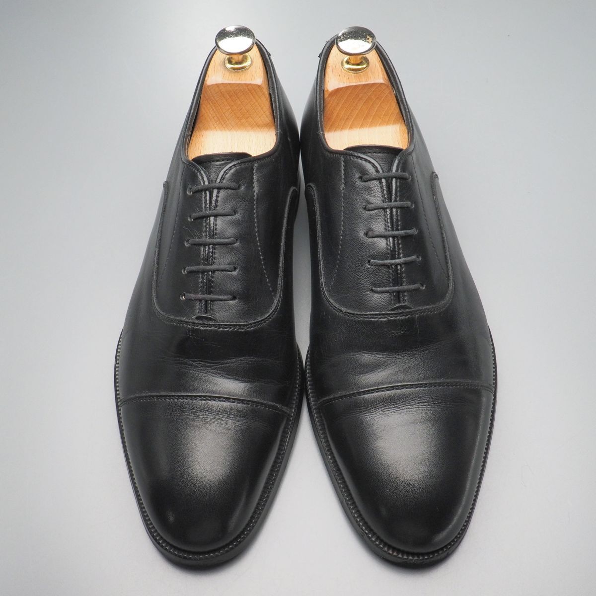 【コンディション詳細】 アッパーのシワ、トゥやかかと周りの薄い擦れキズ、履き口かかとのパイピングにひび割れ、インソールやライニングの薄い擦れ、写真のようにインソール前部に汚れがございますが、その他支障となるようなダメージは見られません。 アウトソールの減りはトゥ・ヒール共に4~5mm程度、トゥに関しましては減りがウェルト付近に達しておりますので、ご落札後に半張りなどの補強・補修をお勧めいたします。 |
