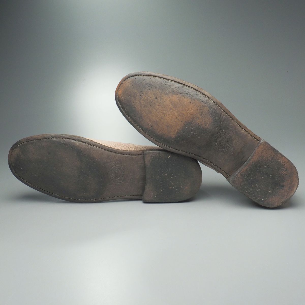 2002年にデザイナーの小池淳司氏によって設立、神戸を拠点にレザーウェアやシューズ、バッグなどを展開する「クリスチャンポー/CHRISTIAN PEAU」の一足です。 コシのある素朴な風合いのキャンバス地をアッパーに用い、キャップやシューレース、ベロやインソール、アウトソールなどをレザーで構成した外ハトメの6アイレットオックスフォード。 ヴィンテージシューズを彷彿とさせるような風格のあるクラシカルな佇まいで深い味わいを醸し出します。 製法:グッドイヤーウェルテッド アウトソール:レザー トップリフト:レザー ライニング:レザー ※撮影用のシューキーパーは付属致しません。 ※本物の商品ですのでご安心の上オークションをお楽しみ下さい。 ※タイトル頭の英数字は弊社の管理番号です。 ※ほかにも多数の商品を出品しています。 ※同梱に関しましては「まとめて取引」でのみ対応可能です、その他の方法での同梱対応は出来かねます。 (※商品の特性上、同梱対応出来ない商品もございますので予めご了承下さい。) |