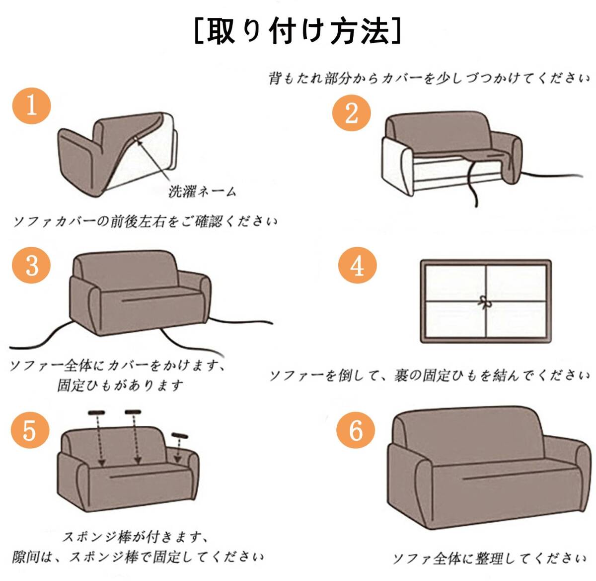 適用ソファサイズ:1人掛け:90-140cm、2人掛け:145-185cm、3人掛け:190-230cm、4人掛け:235〜300cm、パッケージにあるもの:ソファーカバー、クッションカバー2枚付 、スポンジ棒。