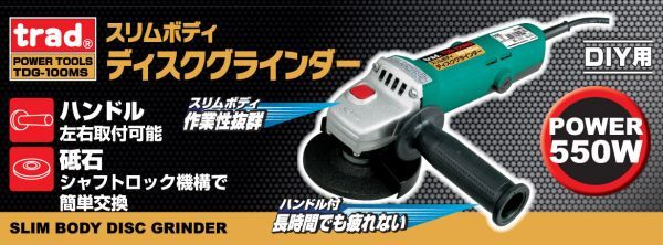 スリムボディで作業性抜群のディスクグラインダーです。 【特徴】 ●ハンドル付き(左右取付可能)で長時間の作業もラクラク! ●シャフトロック機構で砥石の交換が簡単! ●安全・安心の二重絶縁構造 【仕様】 ●DIY用電動工具 ●定格電圧:交流AC100V ●定格周波数:50/60Hz ●定格電流:5.8A ●定格消費電力:550W ●無負荷回転数:10000min-1 ●定格時間:30分 ●コードの長さ:約1.8m ●二重絶縁構造 【付属品】 ●鉄工用オフセット砥石(100x6x15mm) ●砥石支えワッシャー ●砥石押さえナット ●スパナ ●補助ハンドル ●交換用カーボンブラシ1セット メーカー名:株式会社三共コーポレーション ※土、日、祝日、盆(8/13~8/15)、年末年始(12/29~1/5)の発送、連絡業務は行っておりません。 ※発送、連絡、質問等にお答えできるのは上記以外の10時~17時までとなっております。 |
