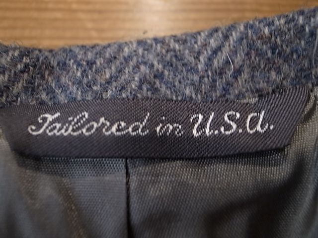 ◆ブランド 「John Peel Ltd.」 アメリカ古着 ●サイズ表記 38R 実寸サイズ M相当 肩幅…44cm(肩先から肩先の間の長さ) 身幅…52cm(両脇を横直線に結んだ長さ) 着丈…74cm(後衿ぐり中央から後身頃裾) 袖丈…61cm(袖付けの肩先から袖先) ※平置き状態での素人採寸ですので、多少の誤差はご了承ください。 ●素材…PURE WOOL ツイード素材 秋冬向き ●色…紺×グレー ヘリンボーンストライプツイード ●ポケット… フラップポケット ●裏地…背抜き仕立て ●ベント…センターベント ●製造国表記…USA ●状態…使用感は少ない美品です。 ★送料 全国一律 700円 佐川急便 (北海道900円 沖縄その他離島1700円) ※複数ご購入の場合、同梱発送可能です。 |