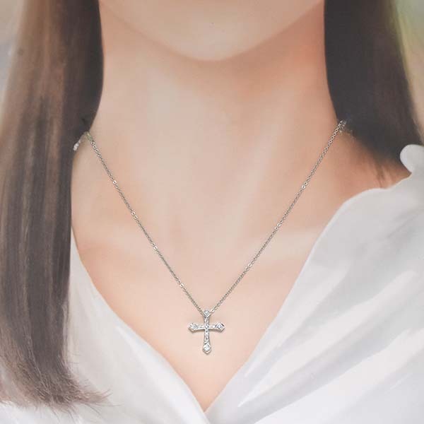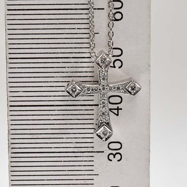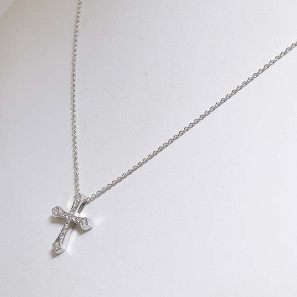 クロスモチーフにダイヤをセットした18金ホワイトゴールド製のペンダントネックレス。| 商品詳細 | |||||||||||||||||||||||||||||||||||||