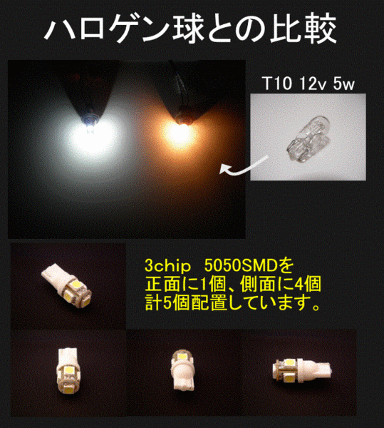 | ◆商品名 T10/T16 3chip SMD 5連LED | ||||||||||||