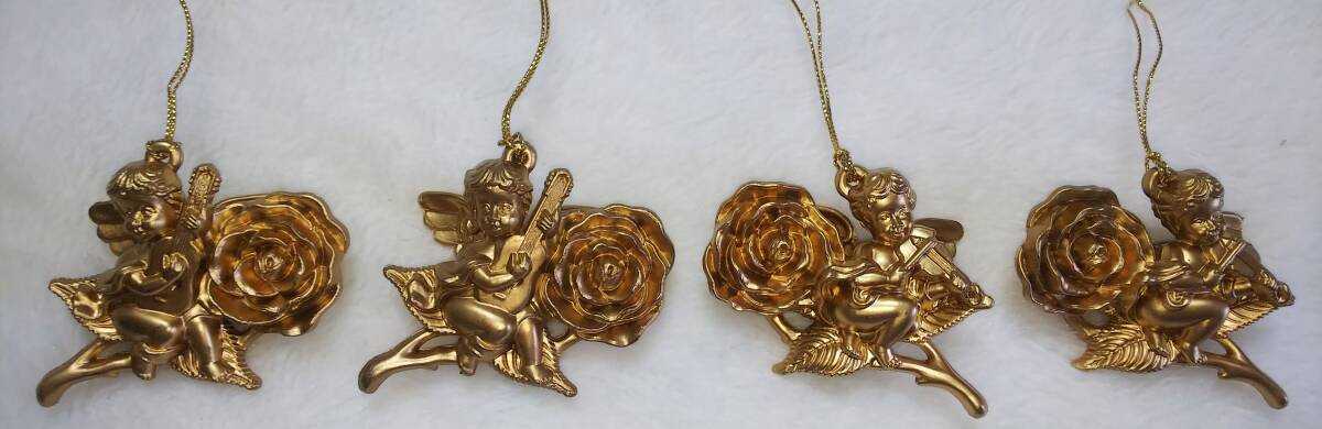 クリスマスオーナメント ゴールドエンジェル バラ飾り 4個 サイズ:約5cmX6.5cm*多少のいたみはご了承下さい。 ノーリターン、ノークレームでお願いします。