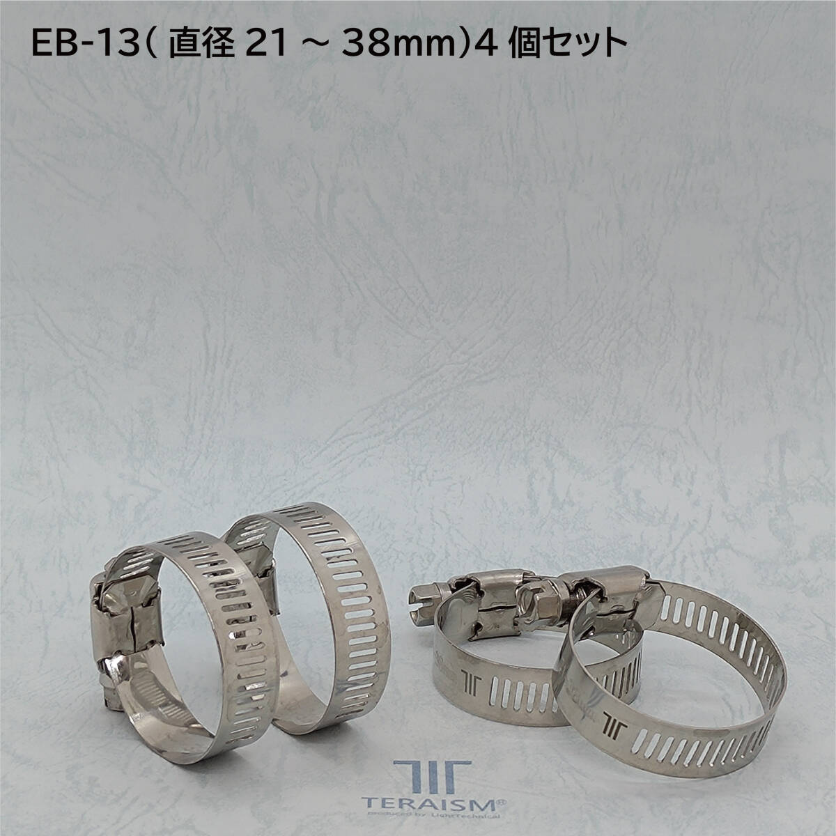■TERAISM EB-13 パフォーマンスホースバンド × 4 【製品仕様】※1個当たり ・対応サイズ:直径21mm~38mm ・幅: 12.6mm ・重さ:重さ: 約20g ・材質:SUS304ステンレス鋼 ご高覧いただきまして、誠に有難うございます。 直径21mm~38mmの配管に対応。 TERAISM独自の化学処理が流動性をサポート。 TERAISM EB-13 ステンレスホースバンドは、 独自のTERAISM化学処理と精密な設計により、 愛車が持つ潜在的なパフォーマンスを引き出すことを目指した革新的な製品です。 配管内の気体・液体・電気等の流れにアプローチし、車両の持つポテンシャルを追求します。 【主な使用箇所(取付先候補)】 直径21mm~38mmの配管類であればどこでも使用可能です。 本製品は中径サイズのパイプに適しており、 特に以下のような配管への設置を推奨します。 ・ラジエーターホース(冷却水の流れをサポート) ・インテークパイプ(吸気系)(吸気の流れをサポート) 【EB-13が追求するパフォーマンス】 独自のTERAISM化学処理により、以下のような変化に貢献する可能性を探求しています。 ・走行性能へのアプローチ: 空気や燃料の流れ、電子制御系の安定化に貢献し、 エンジンのレスポンスやトルク感など走行性能への好影響を追求します。 ・運転安定性への貢献: エンジンとの密着性を高め、振動を抑制することで、 エンジンノイズの低減と運転の安定性へのサポートが期待されます。 ・耐久性・寿命維持への貢献: 液体の流動性向上へのアプローチにより、 エンジンの冷却水や各種オイルの特性をサポートし、 エンジンの耐久性・寿命維持に貢献する可能性を探求します。 【製品の特長と違い】 ・高性能な化学処理: 独自のTERAISM化学処理を施すことで、 従来のホースバンドにはない車両のポテンシャルを 最大限に引き出すことを目指します。 ・精密な設計: 接触面積大きめ採用と締め付け精度の向上により、 密着性を高め、設置効果を安定させます。 【こんな方にオススメ】 ・愛車の性能を最大限に引き出したいあなた ・エンジンの寿命を延ばし、愛車を長く乗り続けたいあなた ・トルク感やレスポンスの向上を追求したいあなた 【取り付けについて】 DIYでの取り付けも可能です。 必要な工具は、レンチとドライバー(または、製品に適合する工具)のみです。 【レーザー刻印について】 TERAISM製品には、レーザー刻印による文字やロゴが施されているものが多数ございます。 それらのレーザー刻印は、素材表面に微細な熱影響を与える特性があるため、 製造工程上、文字部分に不均一な凹凸やごく小さな黒点が生じる場合があります。 これらは、レーザー加工の特性上生じるもので、製品の機能や性能に影響はございません。 あらかじめご了承ください。 【留意事項】 ※本製品は、特定の効果を保証するものではありません。 体感には個人差があり、その効果は車両の種類、年式、走行状況、 運転者の運転習慣、メンテナンス状況など、 様々な要因により大きく変動する可能性があります。 すべてのお客様、すべての車両において 同様の効果を保証するものではございません。 愛車の潜在能力をさらに引き出し、 より快適なドライブをサポートする新しいアイテムとして、ぜひお試しください。 【お礼の品について】 日頃のご愛顧に感謝を込めて、 TERAISM製品を同一梱包で合計1万円以上お買い上げのお客様に、 ささやかではございますが お礼の品 をお送りしております。 ■対象条件 お礼の品は、の「まとめて取引」機能をご利用いただき、 合計金額が1万円以上になるよう決済された場合に限ります。 匿名発送の商品とクリックポストの合計が1万円を超えていても、 弊社では同一のお客様の購入かどうかの判別が不可能な為、「お礼の品」を付けれません。 その場合は、必ず商品のお支払いを完了する前に「まとめて取引」を お客様の方で御指定してください。 ■お礼の品の内容 お礼の品としてお送りする商品は、弊社スタッフが厳選して選定いたします。 お客様からのリクエストや個数のご希望にはお応えできませんので、あらかじめご了承ください。 ■保証について 「お礼の品」で送付させていただきました商品に関しましては、 保証対象外となりますことを、ご理解賜りますようお願い申し上げます。 【注意事項】 ※1 急加速による危険性があります。安全運転を心がけてください。 個体差や車両の状態によって、効果は異なります。 ※2 特殊化学処理製法の影響で、稀に変色や異物の付着等がございますが、 性能には全く影響はございません。 ※3 他社製品との併用は、弊社の技術が他社の技術に影響し、 期待される効果を十分に得られない場合がございます。 ※4 現在のところ因果関係や原因は不明ですが、2輪車ドカティへの使用で警告センサー誤発動や アイドリング不全等のトラブルが発生したとの報告を受けています。 現在調査中ですが、念のためドカティでのご利用はご遠慮ください。 |
