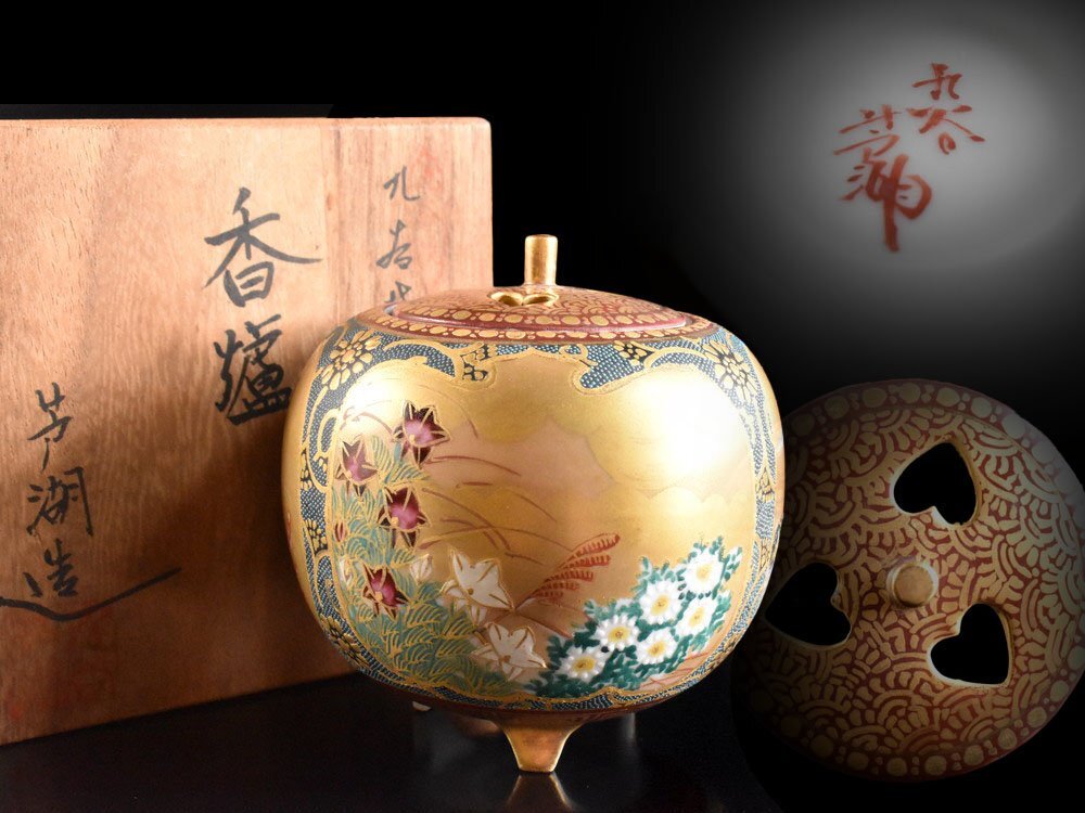 | 商品名 | 【雲】某名家委託品 九谷 住田芦湖 色絵 金彩 細密 花鳥絵付 三足 香炉 在銘 共箱 古美術品(茶道具 香道具)Y7391 LTcdew |