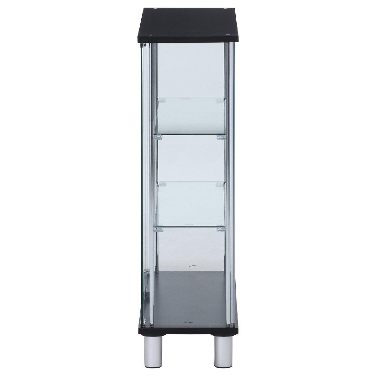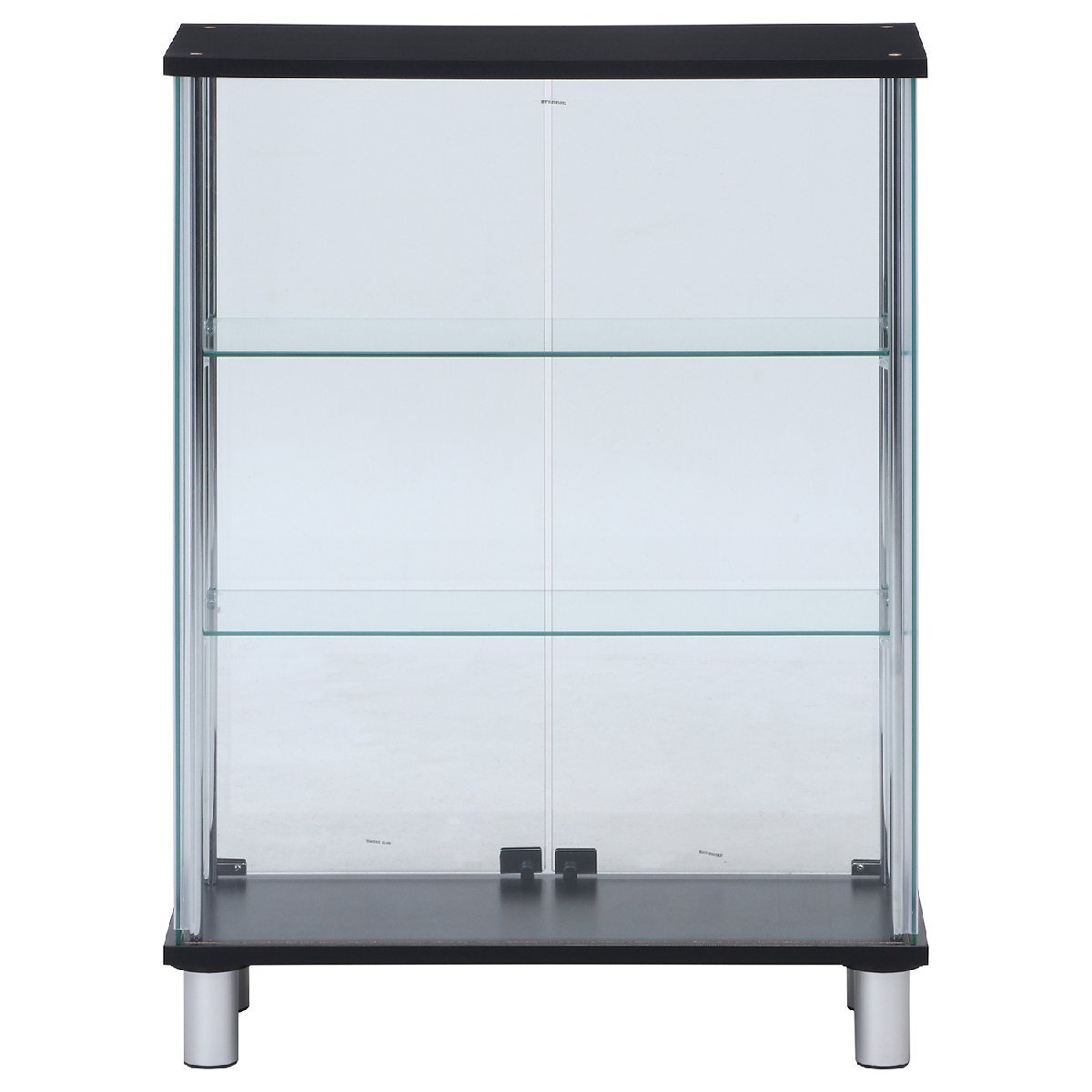 | 素 材 | 構造部材(天板/地板):プリント紙化粧繊維板 構造部材(柱):金属(鋼) 構造部材(扉板/背板/側板/棚板):強化ガラス 表面加工(柱):めっき(クロム) |