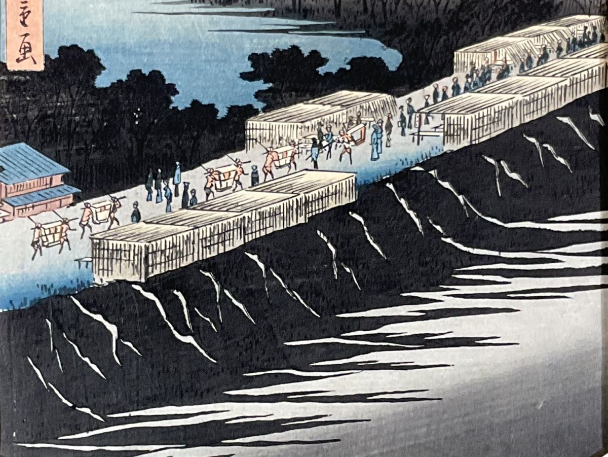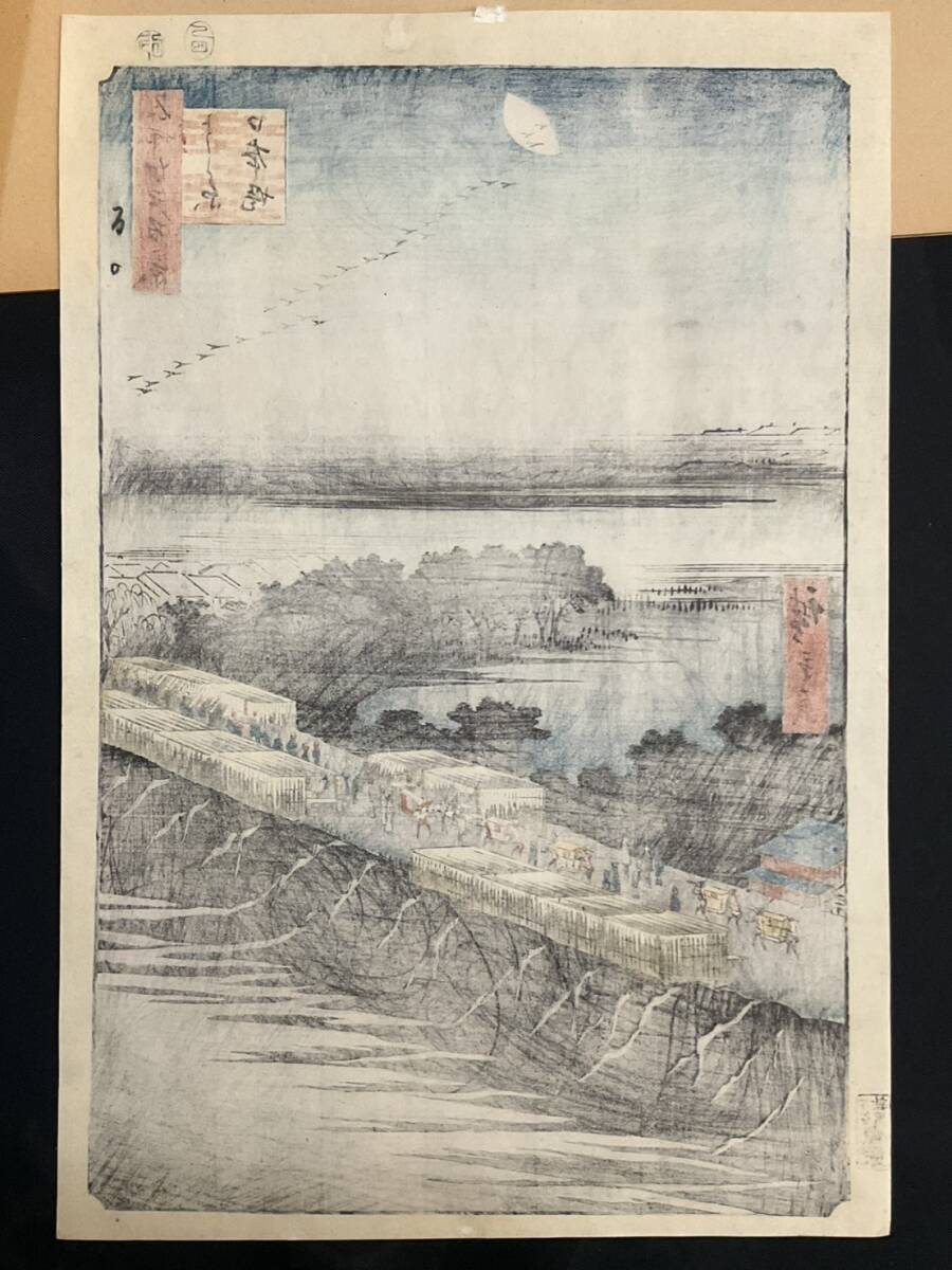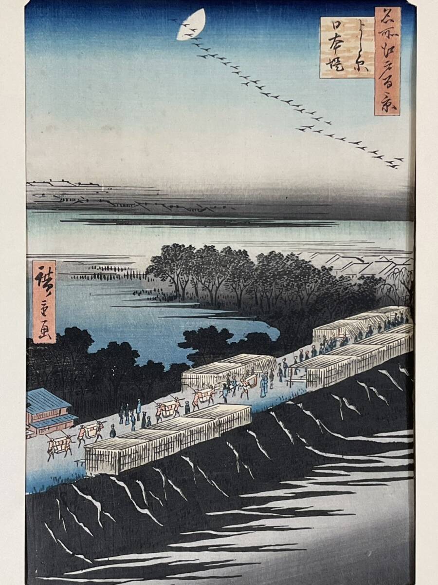 真作■木版画■歌川広重「名所江戸百景 よし原日本堤」■ORIGINAL WOODBLOCK PRINT ■本物 浮世絵 大判 錦絵 ■1c の出品となります。