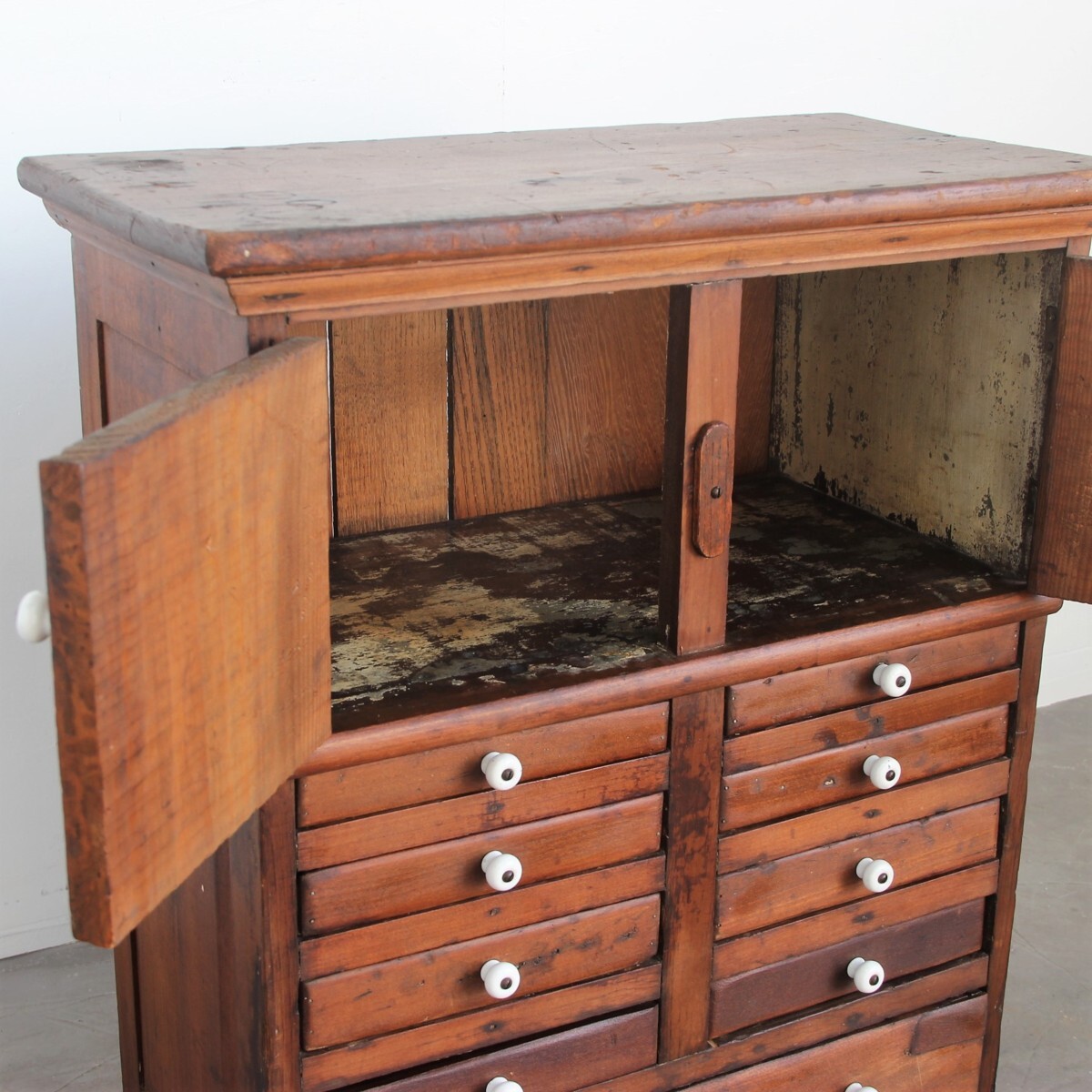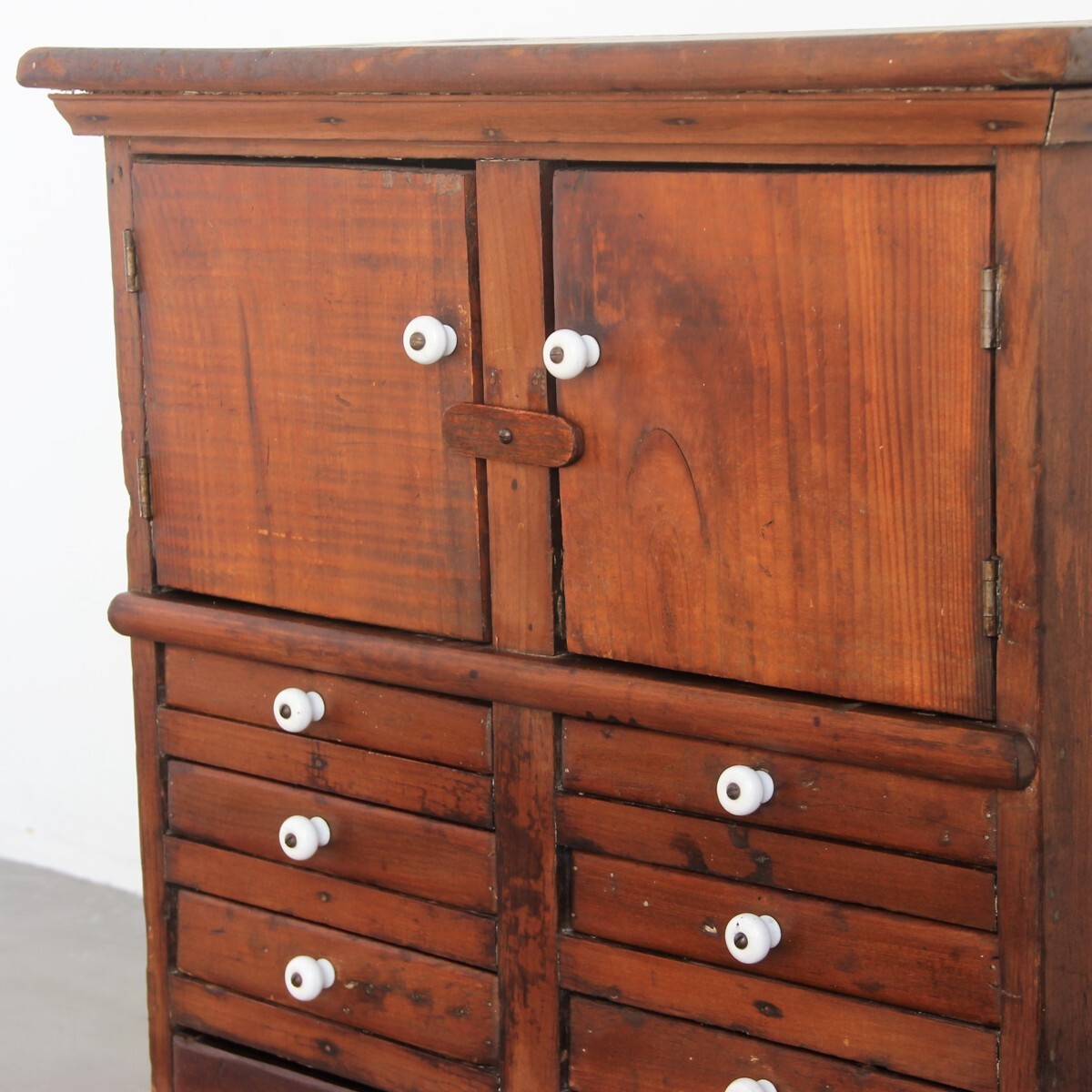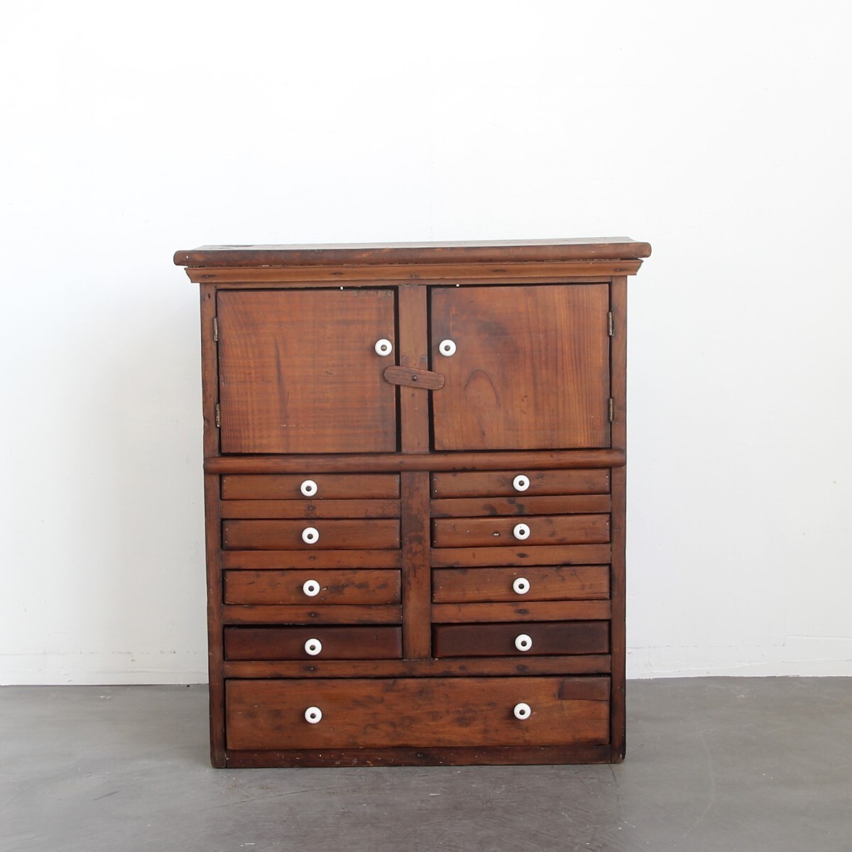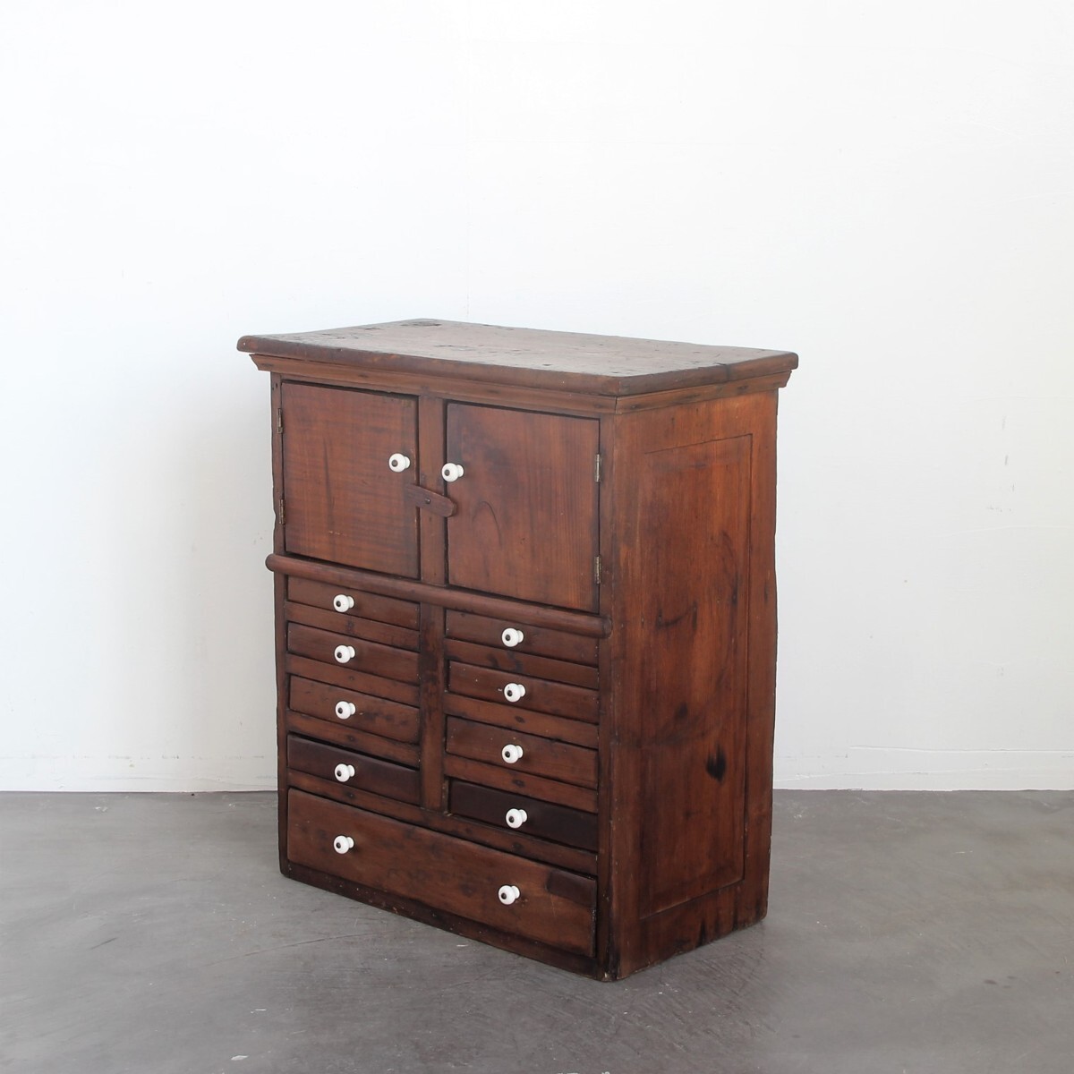 | 商品説明 explanation | 1850年代頃にアメリカニューイングランド州で使用されていた木製キャビネットです。(アメリカ現地人の説明付き) 全体のつくりも非常に古く、引出し取っ手は陶器でOLD感満載です。 アンティークの趣が魅力的で、古く希少なアイテムをいかがでしょうか。 |