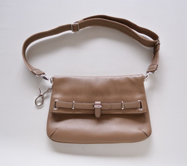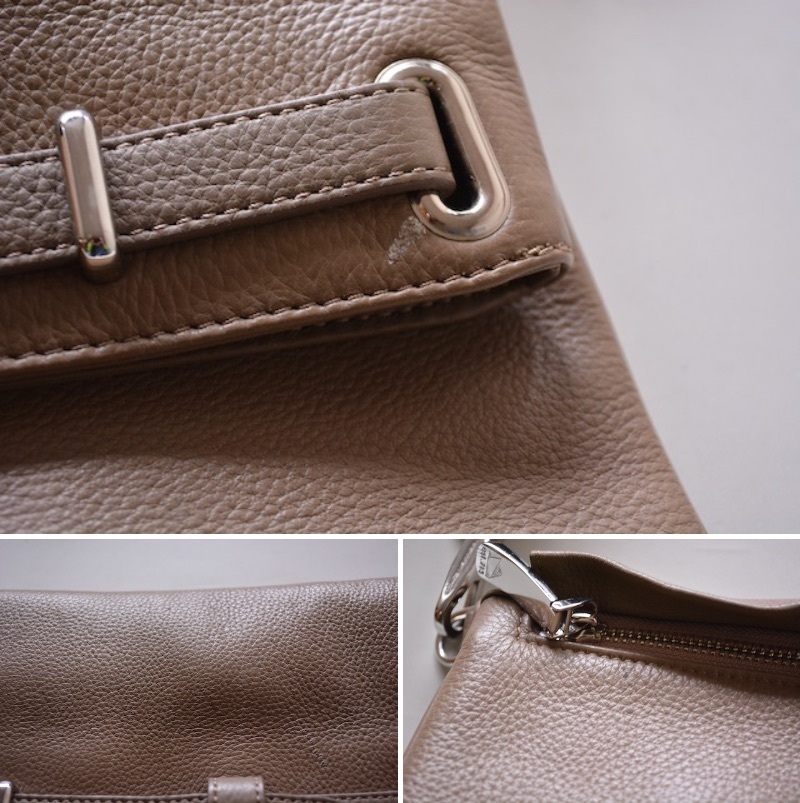 [発送方法/送料は下の方に記載しております。] ショルダーバッグとして、またショルダーを外してクラッチバッグとしてお使いいただけます。 マグネットボタン開閉 (内側) ボタン式ポケット1 オープンポケット2 Dリング 背面ジッパーからダイレクトアクセス可能 フラップ下にマグネットボタン式ポケット 画像に写っているグローブホルダーはオリジナルではないと思いますが、このままおつけします。 サイズ: 横上30cm 横下33cm位 縦23cm マチなし ショルダー最大120cm位 (サイズについて) 実寸は平置きにて測りました。若干の誤差はご了承下さい。 重 さ:775g 素 材:レザー カラー:キャメル系 (画像の色ついて) PC・モバイル環境によって、また個々の色に関する認識にも個人差があります。 色表現は言葉でも写真撮影でもとても難しく、実際のお色と全く同じようには表現するには限界がありますことをご了承下さい。 状 態: 画像10のように薄汚れや小キズがありますが、目立つほどのダメージはありません。 まだまだお使いいただけます。 * 気づいた点があれば記載させていただいておりますが、中古状態(ダメージ、匂い等々)に対する判断は個々に違います。USEDをご理解の上でご検討ください。 |
