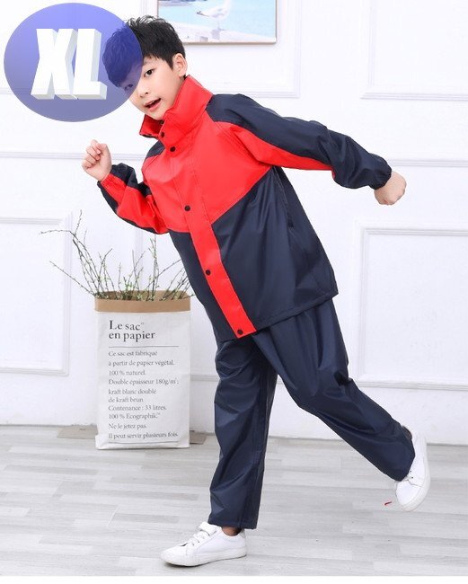 レインウェア 合羽 上下 レインウェア キッズ 子供用 雨具 通学 ネイビー XLサイズ 115㎝-130cm n361