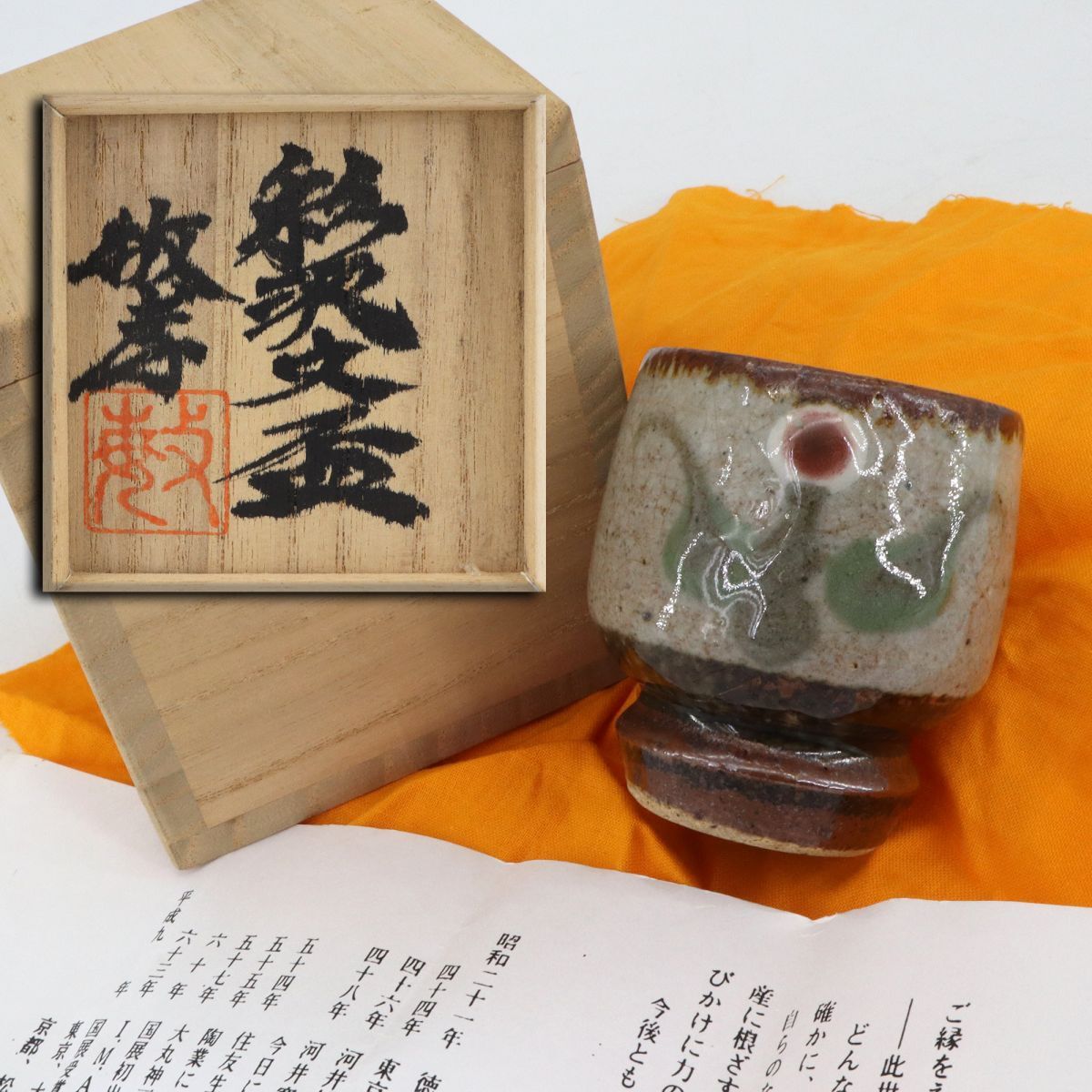 【河井敏孝】彩泥文盃 酒杯 酒器 ぐい呑み 祖父河井寛次郎 栞付 です。 サイズ:サイズはおおよそです。 ◆直径5㎝ 高さ6㎝ 大きな目立つような傷はありません。 共箱は経年によるスレ等あります。 画像でご確認の上ご検討お願いいたします。 写真にある物が全てです。 ※撮影に伴う備品類は付属しません。 万が一、タイトルなど記載に誤りがある場合は恐縮ですが画像を優先してご判断ください。 土日は営業時間外ですのでご質問は平日にお願いします。 (返答可能時間 月~金曜日 10:00~17:00) ※いたずら目的の入札や落札後にお取引を放棄する 無責任な行為を防止するため 誠に不本意ではありますが、 新規IDおよび悪い評価が複数回ある方の ご入札は当方により取り消しいたします。 あしからずご了承ください。 |