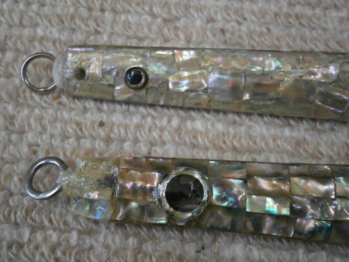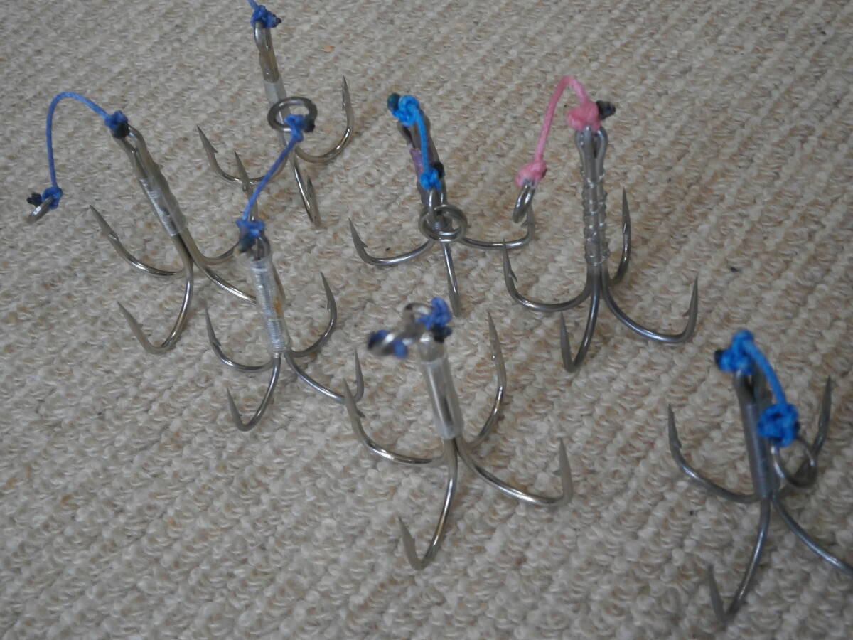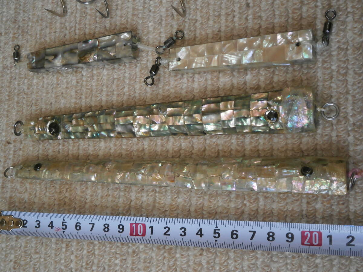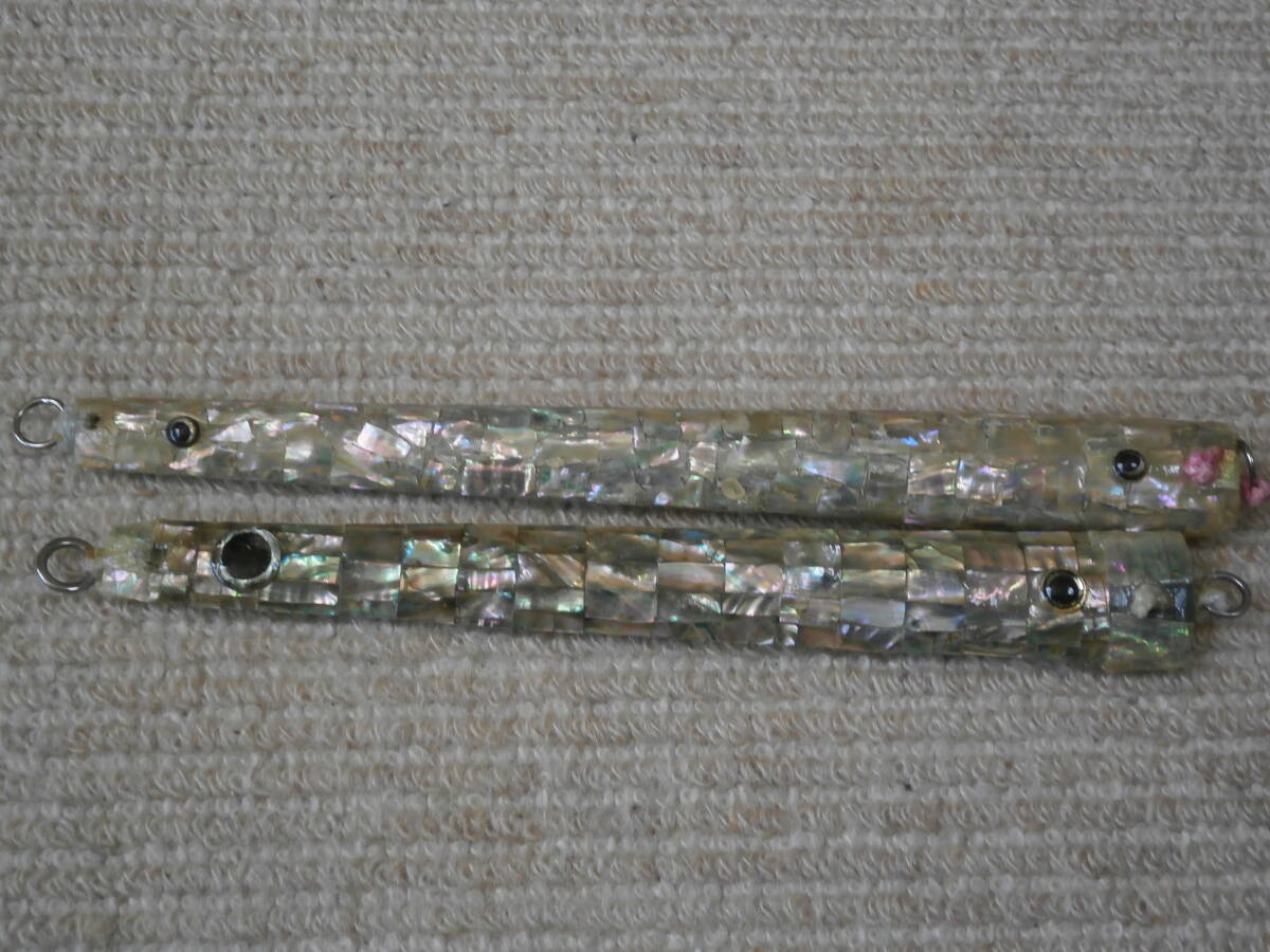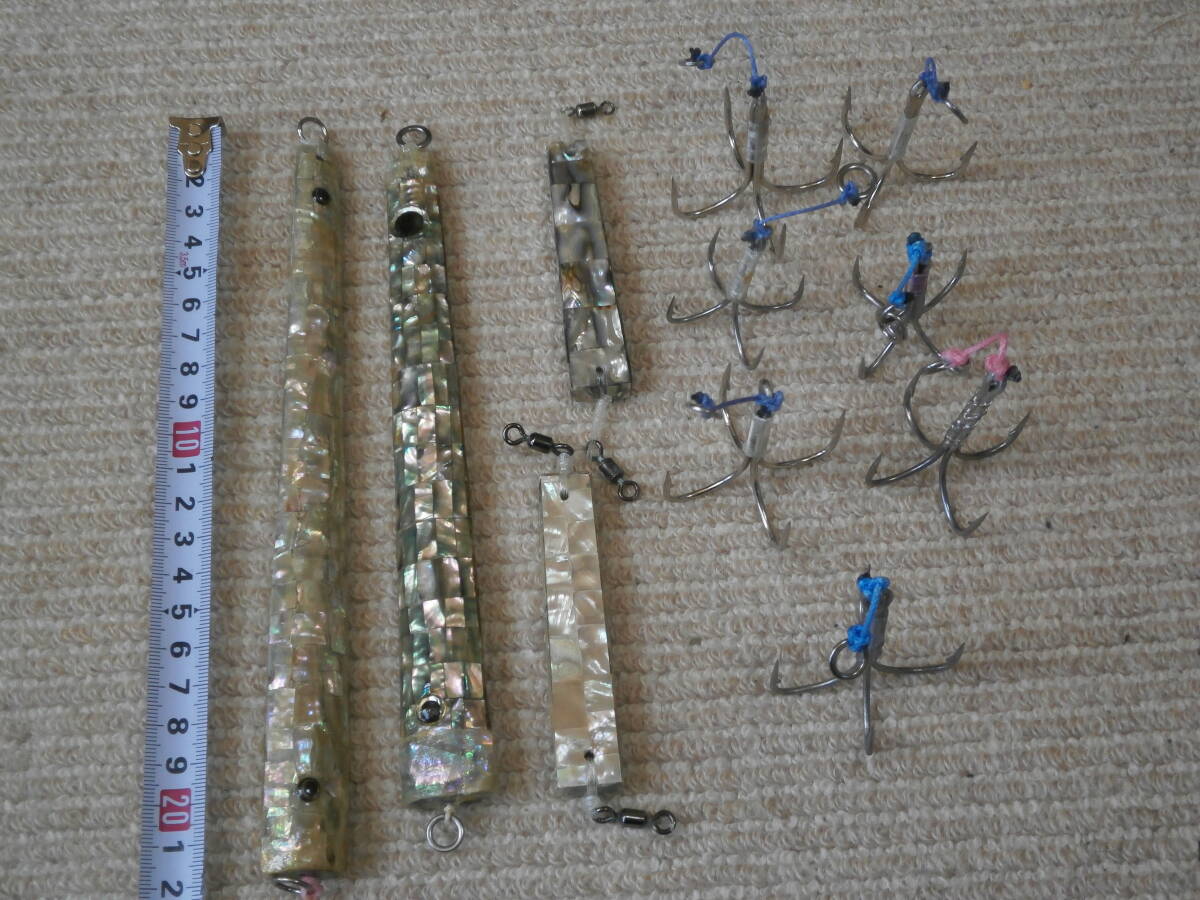 シャクリ しゃくり棒 2本<199g、195g、です。上下で補修しています。>、中間錘2本<90g、84g>、ステンレス針7本 セット<4本針6個、3本針1個> です。