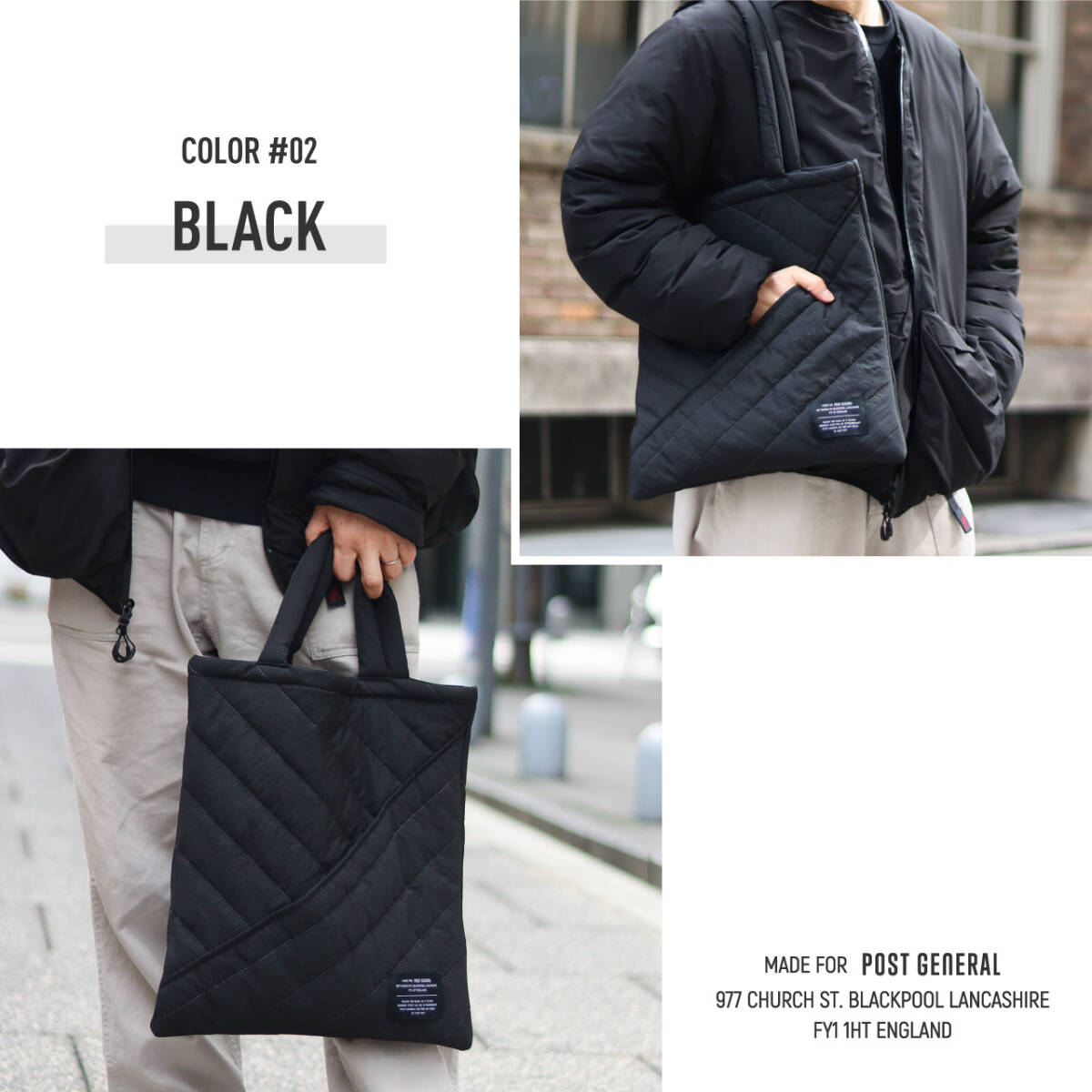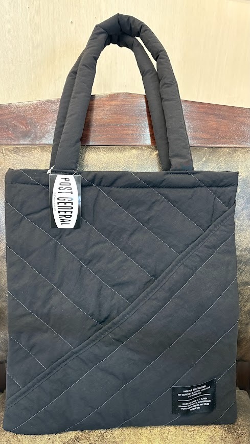 POST GENERAL / ポストジェネラルキルティングナイロン生地を使用した、軽やかなトートバッグ。 シンプルな形状に、斜めのキルティングパターンが印象を添え、日常使いにほどよい個性を与えてくれます。 外側にはスマートフォンなどをすぐに取り出せるポケット付き。 寒い季節にはアウターのポケットのように手を差し込める形状で、使い勝手も抜群です。 内側には小物収納に便利なポケットと、鍵などを吊り下げられるミニカラビナリングを備えました。 A4サイズが入る大きさながら、重さはわずか約160gと超軽量。 通勤や通学にもぴったりです。 ・火気や高温になるものに近づけないでください。火災や本品の変質の原因となります。 ・水や汗、摩擦や使用状況などにより色落ちや色移りすることがあります。 ・手洗いを推奨します。 ・汚れた場合はぬるま湯で手洗いし、形を整えてから陰干ししてください。 ・洗濯機をご使用の際は、洗濯ネットに入れて「弱モード」等で洗ってください。 ・できるだけ実物の色に近くなるように努めていますが、お使いの環境(モニター、ブラウザ等)の違いにより色の見え方が実物と若干異なる場合があります。 size:約 w350×h400mm(持ち手 h270mm) 重量:約 160g カラー:ブラック ■生産地:中国 ■素材・成分:ナイロン、ポリエステル 新品 どうぞよろしくお願いいたします |