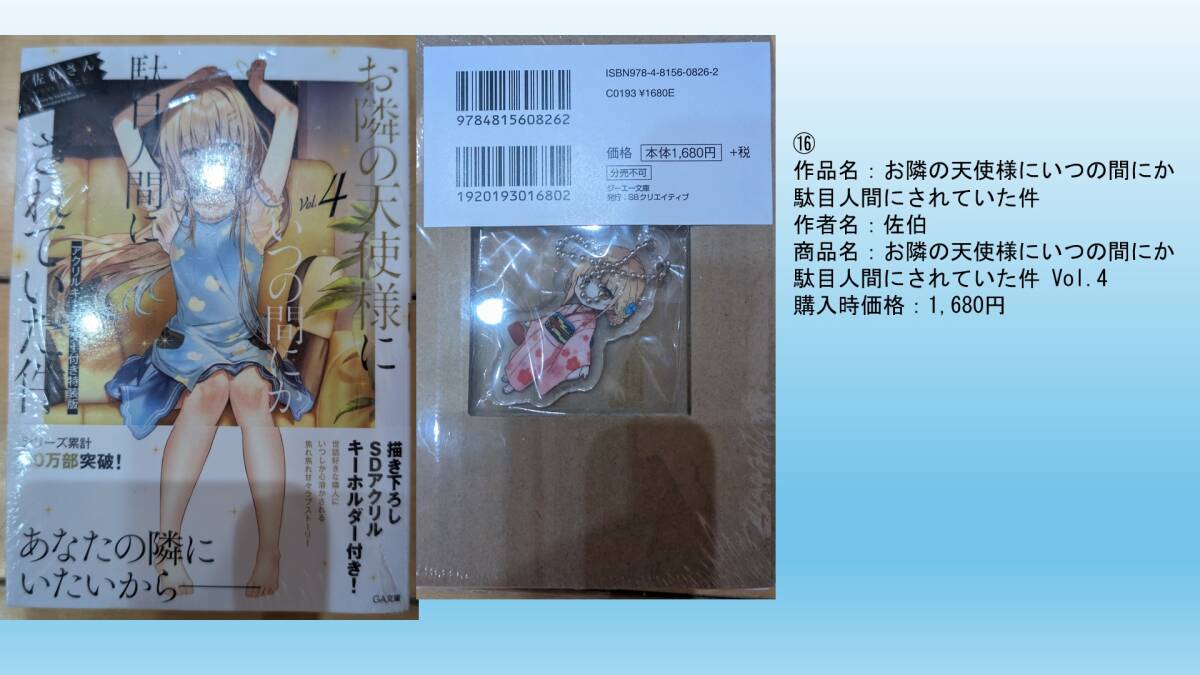 ⑯ お隣の天使様にいつの間にか駄目人間にされていた件 佐伯 お隣の天使様にいつの間にか駄目人間にされていた件 Vol.4| 出价者 | 信用 | 价格 | 时间 |