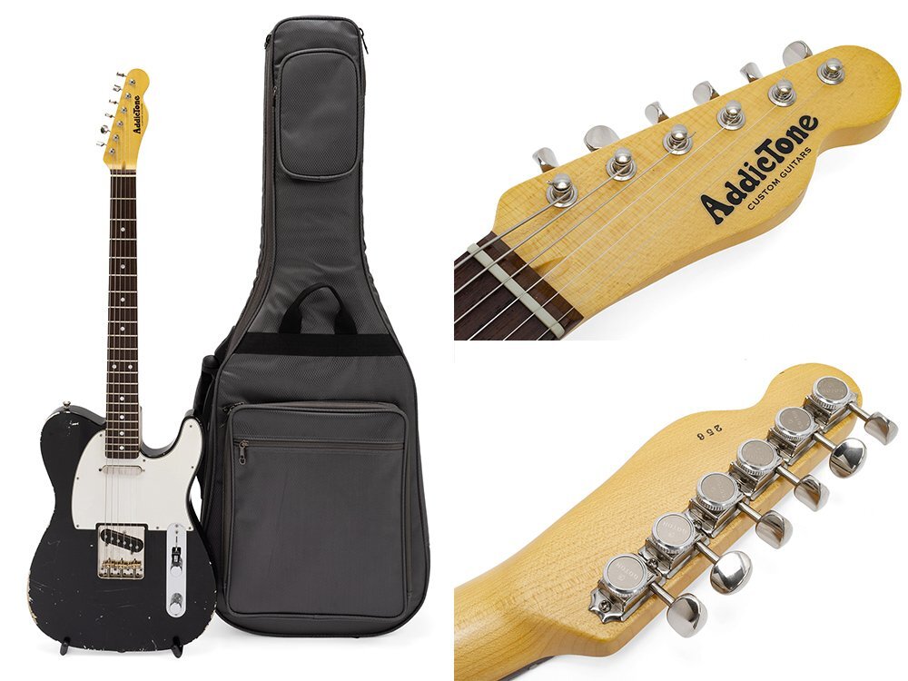 日米の卓越した職人の手によって製作されるオリジナルのギターやエフェクターを手掛けるアディクトーンによる、テレキャスタータイフのカスタムギターです。ラベルも刻印もないため詳細は不明ですが、ネックを外したヒール側の書き込みを見るにネック自体は2019年に、ギターへの組み込みは2020年に行われ出荷されたと思われます。ご参考程度にお考え下さい。 |