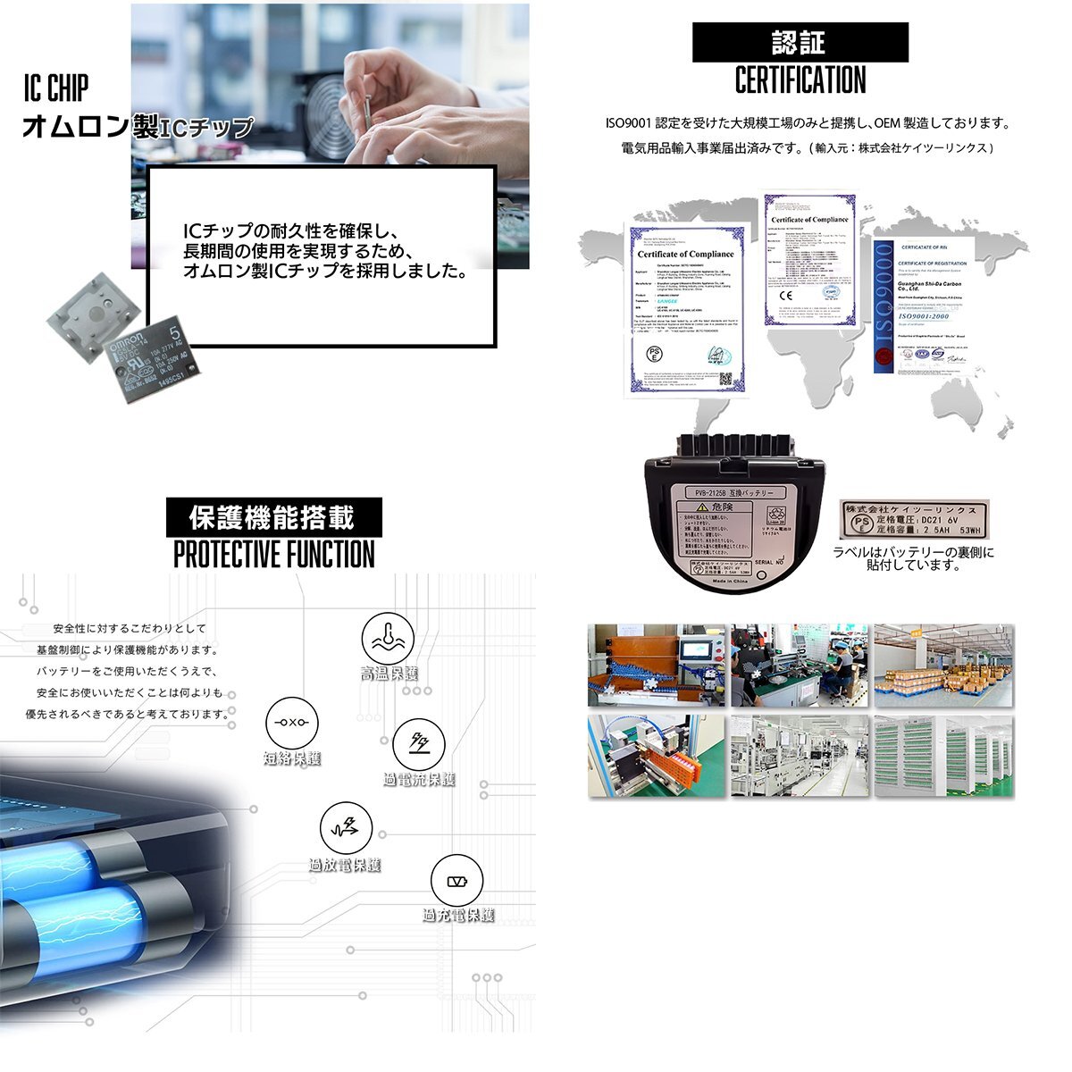 ・当製品は国産セルを搭載している互換バッテリーですが、日本製という意味では御座いませんのでご注意ください。 ・北海道200円、沖縄県・離島800円の別途送料が加算されます。 ・新品ですが、製造時・輸送時につく小傷がある場合がございます。 ・予告無く商品仕様やデザインが変更される場合がございます。 ・土日祝はすべての業務をお休みさせていただきます。 バッテリー製品保証についてはこちらをご確認ください。 |