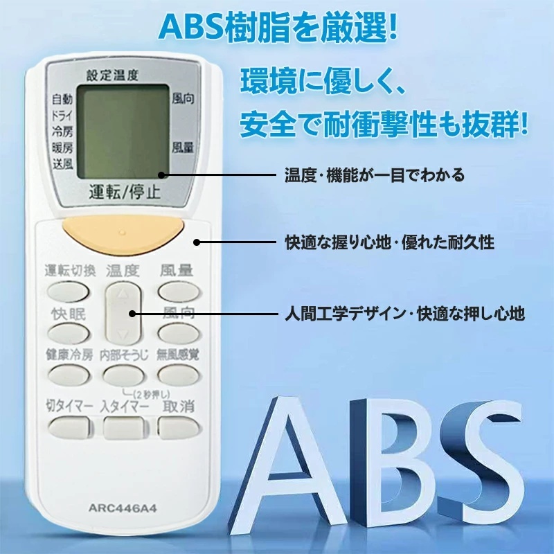 商品番号: YY1029 商品説明 ・ダイキン純正品ではありませんが、問題なくご使用いただけます。 ・純正リモコンと同機能のボタンが設置されており、主な機能は全て使用できます ・電池は別売りとなります。 ・汎用リモコンやマルチリモコンとは異なり、純正リモコンの機能がそのままご利用いただけます。 適応機種 S22JTNS-C,S22JTNS-W,S22KTNS-C,S22KTNS-W,S22KTNS-W7,S22LTES-C,S22LTES-C7,S22LTES-W,S22LTES-W7,S25JTNS-C,S25JTNS-W,S25KTNS-C,S25KTNS-W,S25KTNS-W7,S25LTES-C,S25LTES-C7,S25LTES-W,S25LTES-W7,S28JTNS-C,S28JTNS-W,S28JTNV-C,S28JTNV-W,S28KTNS-C,S28KTNS-W,S28KTNV-C,S28KTNV-W,S28LTES-C,S28LTES-W,S28LTES-W7,S28LTEV-C,S28LTEV-W,S36JTNS-C,S36JTNS-W,S36JTNV-C,S36JTNV-W,S36KTNS-C,S36KTNS-W,S36KTNV-C,S36KTNV-W,S36LTES-C,S36LTES-C7,S36LTES-W,S36LTES-W7,S36LTEV-C,S36LTEV-W,S40JTNP-C,S40JTNP-W,S40JTNV-C AN25KNBS-W,AN25KNS-W,AN25KNSJ-W,AN25KNSK-W,AN25KUS-W,AN25LEBBS-W,AN25LES-W,AN25LESK-W,AN25LKS-W,AN25LUS-W,AN28JKS-W,AN28JNBS-W,AN28JNS-W,AN28JNSJ-W,AN28JNSK-W,AN28JUS-W,AN28KKS-W,AN28KNBS-W,AN28KNS-W,AN28KNSJ-W,AN28KNSK-W,AN28KUS-W,AN28LEBBS-W,AN28LES-W,AN28LESK-W,AN28LKS-W,AN28LUS-W,AN36JKS-W,AN36JNBS-W,AN36JNS-W,AN36JNSJ-W,AN36JNSK-W,AN36JUS-W,AN36KKS-W,AN36KNBS-W,AN36KNS-W,AN36KNSJ-W,AN36KNSK-W,AN36KUS-W,S40JTNV-W,S40KTNP-C,S40KTNP-W,S40KTNV-C,S40KTNV-W,S40LTEP-C,S40LTEP-W,S40LTEV-C AN36LEBBS-W,AN36LES-W,AN36LESK-W,AN36LKS-W,AN36LUS-W,AN40JKP-W,AN40JNBP-W,AN40JNP-W,AN40JNPJ-W AN40JNPK-W,AN40JUP-W,AN40KKP-W,AN40KNBP-W,AN40KNP-W,AN40KNPJ-W,AN40KNPK-W,AN40KUP-W,AN40LEP-W,AN40LEPK-W,AN40LKP-W,AN40LUP-W,AN50JKP-W,AN50JNBP-W,AN50JNP-W,AN50JNPJ-W,AN50JNPK-W,AN50KKP-W,AN50KNBP-W,AN50KNP-W,AN50KNPJ-W,AN50KNPK-W,AN56LEBBP-W,AN56LEPK-W,AN56LKP-W,ATE22LSE7-W,ATE25LSE7-W,ATE28LSE7-W,ATE36LSE7-W,ATE40LPE7-W,ATE56LPE7-W,ATN22JSE5-W,ATN22KSE6-W,ATN25JSE5-W,ATN25KSE6-W,ATN28JSE5-W F22JTNS-C,F22JTNS-W,F22KTNS-C,F22KTNS-W,F22KTNS-W7,F22LTES-C,F22LTES-C7 F22LTES-W,F22LTES-W7,F25JTNS-C,F25JTNS-W,F25KTNS-C,F25KTNS-W,F25KTNS-W7,F25LTES-C,F25LTES-C7,F25LTES-W,F25LTES-W7,F28JTNS-C,F28JTNS-W,F28JTNS-W7,F28JTNV-C,F28JTNV-W,F28JTNV-W7,F28KTNS-C,F28KTNS-W,F28KTNV-C,F28KTNV-W,F28LTES-C,F28LTES-C7,F28LTES-W,F28LTES-W7,F28LTEV-C,F28LTEV-W,F36JTNS-C,F36JTNS-W,F36JTNS-W7,F36JTNV-C,F36JTNV-W,F36KTNS-C,F36KTNS-W,F36KTNV-C,F36KTNV-W,F36LTES-C,F36LTES-C7,F36LTES-W7,F36LTEV-C,F36LTEV-W F40KTNP-W,F40KTNV-C,F40LTEP-C,F40LTEP-W,F40LTEV-C,F40LTEV-W,F50JTNP-C,F50JTNP-W,F50JTNP-W7,F50JTNV-C,F50JTNV-W,F50JTNV-W7,F50KTNP-C,F50KTNP-W,F50KTNV-C,F50KTNV-W,F50LTEP-C,F50LTEP-W,F50LTEV-C,F50LTEV-W,F56JTNP-C,F56JTNP-W,F56JTNP-W7,F56JTNV-C,F56JTNV-W,F56JTNV-W7,F56KTNP-C,F56KTNP-W,F56KTNV-C,F56KTNV-W,F56LTEP-C,F56LTEP-W,F56LTEV-C,F56LTEV-W。S40LTEV-W,S50JTNP-C,S50JTNP-W,S50JTNV-C,S50JTNV-W,S50KTNP-C,S50KTNP-W,S50KTNV-C,S50KTNV-W S50LTEP-C,S50LTEP-W,S50LTEV-C,S50LTEV-W,S56JTNP-C,S56JTNP-W ※《代表対応機種》に記載されている「-C」「-C7」「-W」「-W7」「-K」は、本体の色柄を示すもので、機能面の違いはありません。