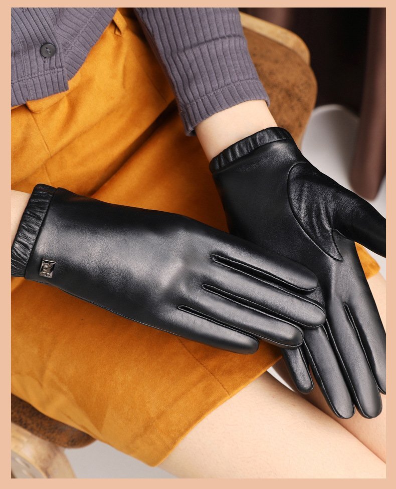 本革 羊革手袋 レディース レザー シープスキン 女性 保温 防寒 防風 暖かい 裏起毛防風 大人 通勤 暖かい 柔らかい女性 M/L ☆ブラック [浏览原始页面]