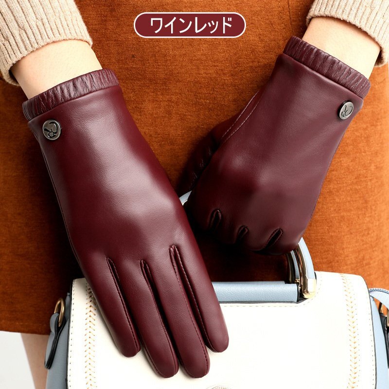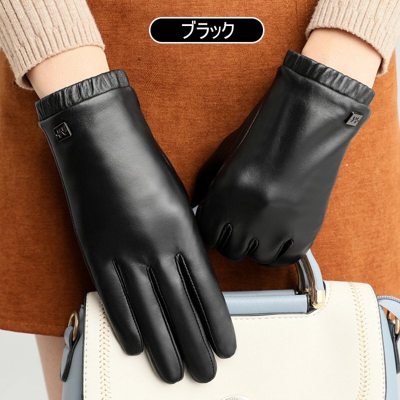 本革 羊革手袋 レディース レザー シープスキン 女性 保温 防寒 防風 暖かい 裏起毛防風 大人 通勤 暖かい 柔らかい女性 M/L ☆ブラック