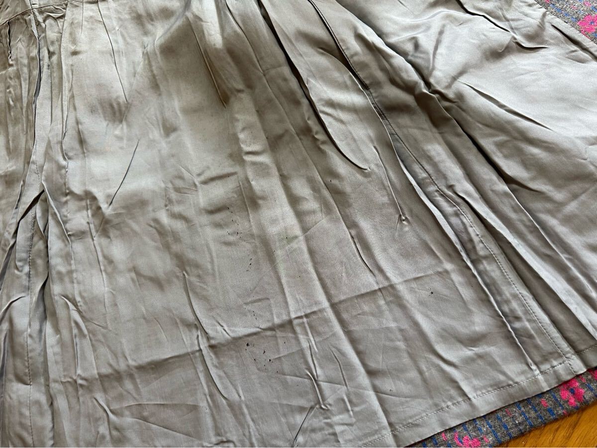 ◇サイズ◇ 着丈約94cm×身幅約39cm×袖丈約46cm 平置き採寸です。素人採寸ですので多少の誤差があることもございますことをご了承下さい。 ◇素材◇表記が無いため不明です ◇コンディション◇ こちらUsed品のお品です。裏地に穴がございます。 ・USEDの場合はUSEDにご理解のある方のみご入札ください。中古品にご理解のない方や神経質な方はご遠慮下さい。 ・ダメージなど出来る限りお知らせさせていただいておりますが、保存時における使用感、小さなダメージがある場合がございます事をご了承下さいますようお願いいたします。古着の特徴をご理解の上、ご購入いただけますようよろしくお願い致します。・未使用であってもお店の新品とは異なりますのでご了承ください。 ・商品のチェックは行っておりますが100%の説明は不可能です。着用に支障が出ない程度の細かい部分見落としがあった場合も含めノークレームノーリターン厳守でお願い致します。 ・その他、お品物気になる点等ございましたらお気軽にご質問ください。 ・同梱ご希望の際はその旨メッセージにてお知らせ下さい。ご検討頂いているお品が全て終了しましてからおまとめお取引のご依頼をお願いします。 ・オークション終了後48時間以内にご連絡頂けなかったり、かんたん決済のご入金期限が切れてしまいました際には落札者様都合で取り消させて頂きます。 | ||||