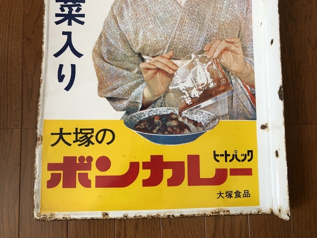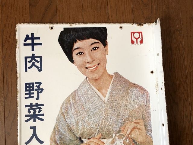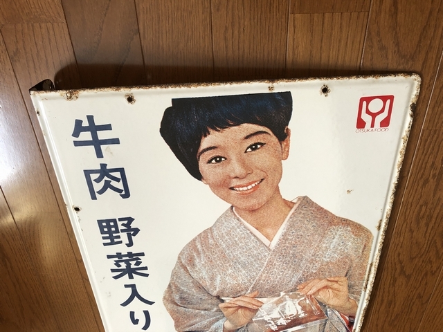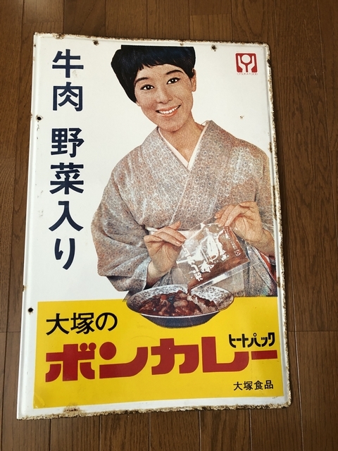 即決【昭和レトロ百貨店】珍品 松山容子さん ボンカレー 透明パック 白色着物 大塚食品 袖付両面 ホーロー看板 当時物 ビンテージ 広告 アンティーク 街並み 商店街| 出价者 | 信用 | 价格 | 时间 |