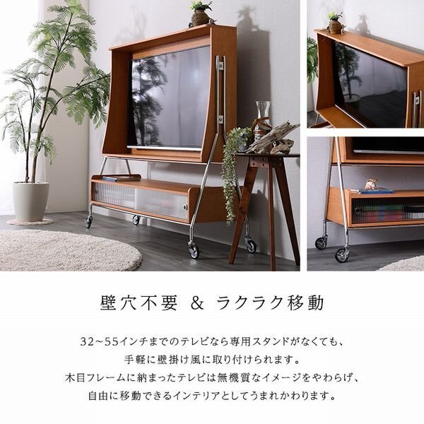 | キャスター付きテレビスタンドシェルフ! ステンレスとナチュラルな木目を組み合わせたスタイリッシュなデザインでお部屋を彩ってくれます。 キャスター付きなので、移動するのも楽々です。 |