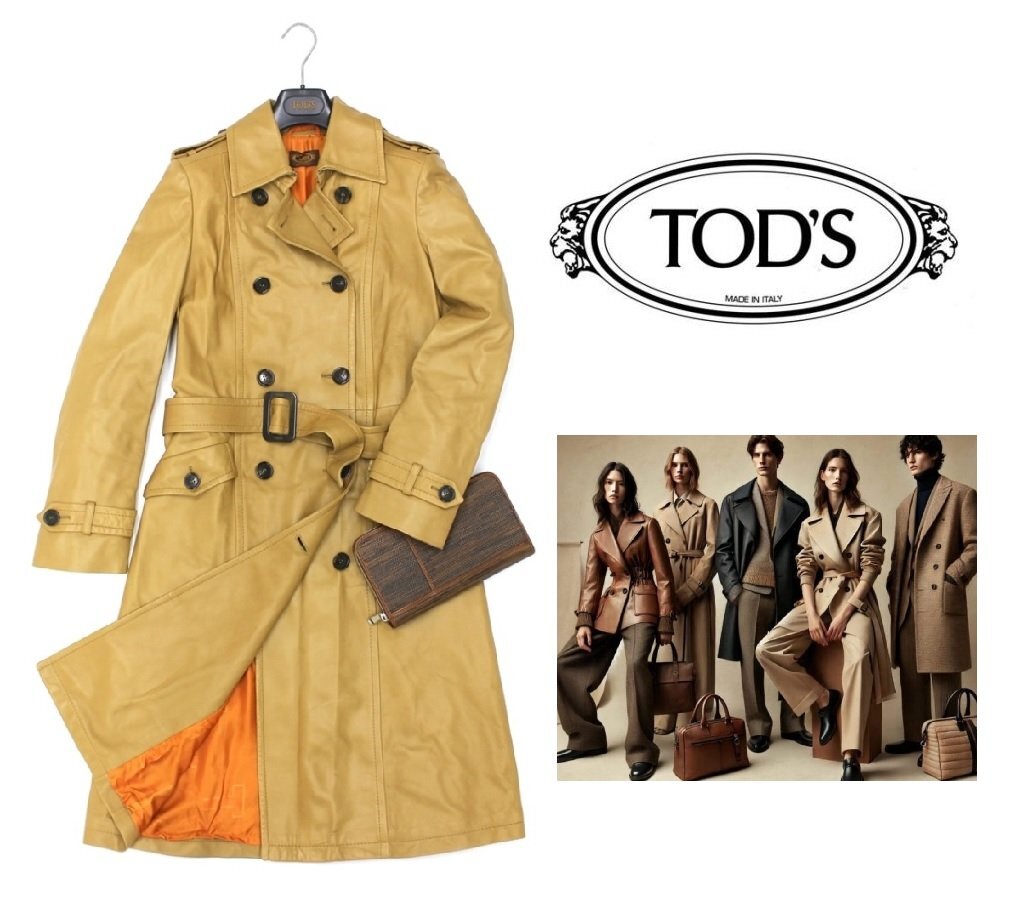 140万新品◆44◆TOD'Sトッズ◆イタリア製 最高級ソフトラムレザートレンチコート クラシックデザイン キャメル茶