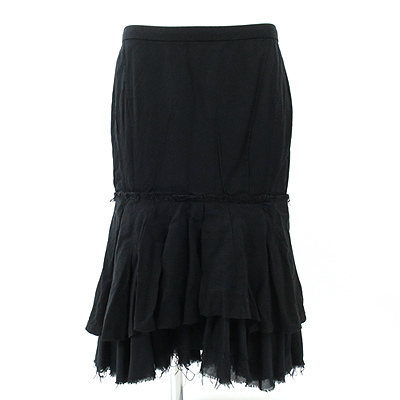 | モードな雰囲気漂うティアードフリルスカートです♪ アシメトリーできりっぱなしのデザインがオシャレな一品。 ブラックのシックなお色でクールな印象に☆ トップスにシンプルなアイテムをもってくると◎ 存在感のあるスカートですのでコーデのアクセントになります。 フリルをふんだんに使用していますので多少の重さを感じます。 使用感をあまり感じないお品ですので、この機会に是非どうぞ♪ ウエスト約77cm ヒップ約82cm スカート丈約61cm 【サイズ】:(40) 【素 材】:(指定外繊維(リヨセル)71%・ナイロン29%(裏地 キュプラ100%)) 【 色 】:(黒) 【程 度】:(A) 12140421-003 316 043 | ||||