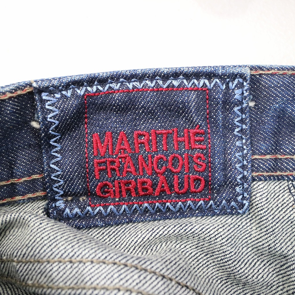 | 【商品管理番号】 O8845 【ブランド】 MARITHE + FRANCOIS GIRBAUD/マリテ フランソワ ジルボー 【サイズ】 31 【実寸サイズ】 ウエスト:約80cm 股上:約25cm 股下:約87cm わたり幅:約26cm 裾幅:約20cm 【主な素材】 表地 : コットン 【色】 ネイビー 【仕様】 ジーンズ ストレート 【状態】 汚れ: フロントポケット内 特記事項: 背面左ポケット口に擦れあり フロント両もも上部に色の抜けあり | |||