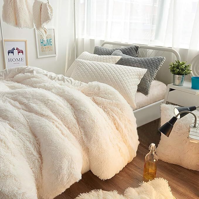 Skazi 布団カバーセット セミダブル 4点セット 冬用 あったか 手足の長い シャギー素材 オシャレ 洋式 ベッド用 シーツセット 掛け布団カバー
