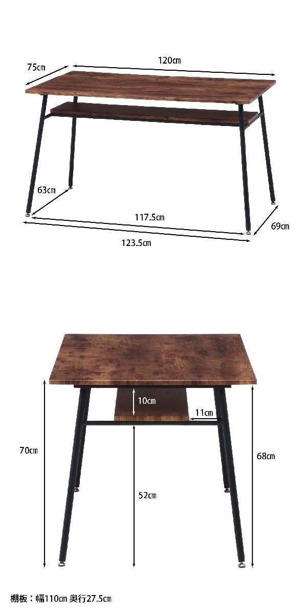 | 備 考 | ■壁につけておしゃれなカウンターテーブルとしても使えます。 ■スマホや新聞がおける棚付きです。 ■おしゃれなビンテージ風の木目調カラーです。 |