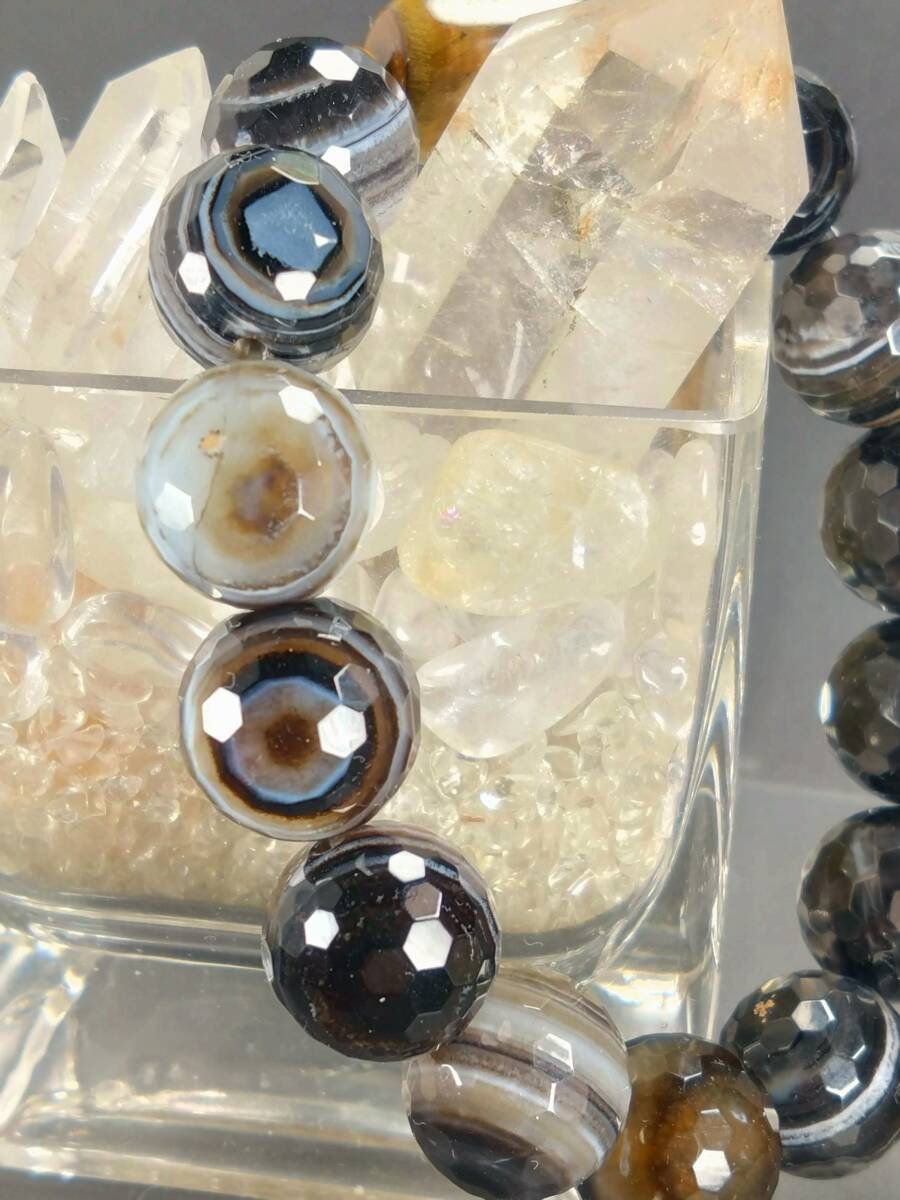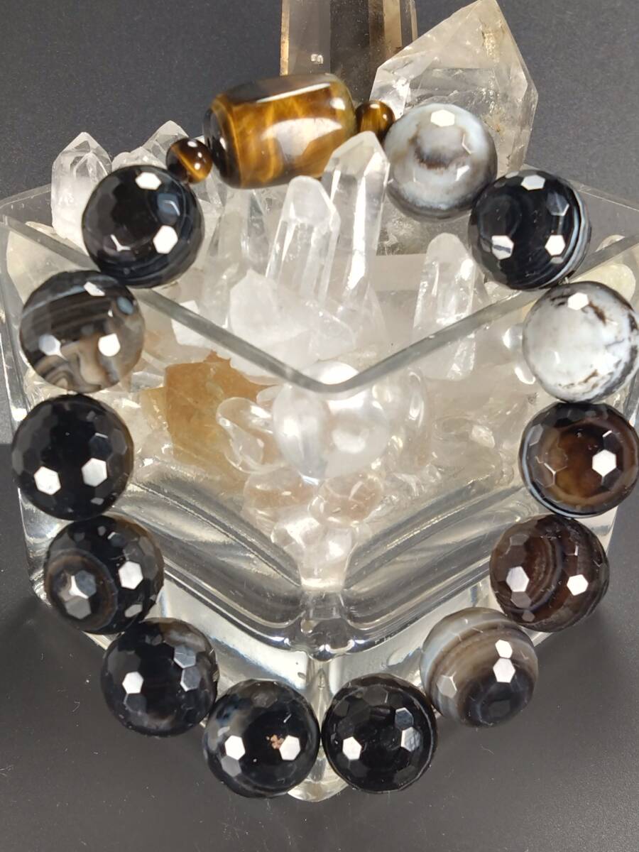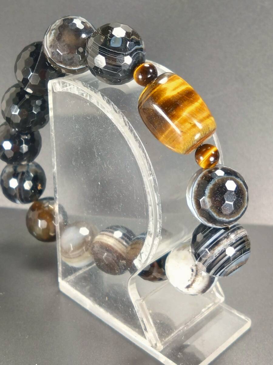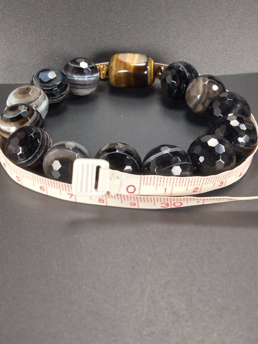 大粒チベットメノウ(天眼石)約16mm128面カット玉13石 20×13mmラフカットタイガーアイ入 内径約19.2cm 外径約28.7cm モビロンゴム使用ブレスレットのご紹介です 在庫処分特価にしていますが新品です 今回の大粒チベットメノウには128面カットをしているので優しい光がキラキラととても心地よい印象を与えてくれるブレスレットに仕上がっています | 出价者 | 信用 | 价格 | 时间 |