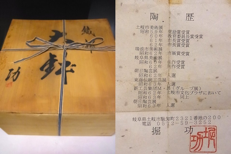 堀功 織部 大鉢 48.5cm共箱でございます。 堀功は岐阜県美術展 佳作受賞、朝日陶芸展 東海伝統工芸展 入賞の陶芸家です。 気になるような傷などは見られず至って良好な状態です。 経年保管のお品ですので、保管に伴う経年変化はご理解ください。 お品寸約 径 48.5cm 高さ 25cm 共箱でございます。 (箱には痛みが見られます。) お品は保障させていただきますので、レブリカや贋作の類だった場合や 説明と違う状態だった場合は返品はもちろん、送料や振込み手数料を当店で 負担させていただきます。 どうぞ宜しくお願い致します。 ※出品者の齊藤商店は創業75年の美術商です。ホームページは【こちら】をご覧ください。(外部サイト) 他にもいろいろと出品しておりますので下記バナーをご覧下さいませ。 ![]() |
