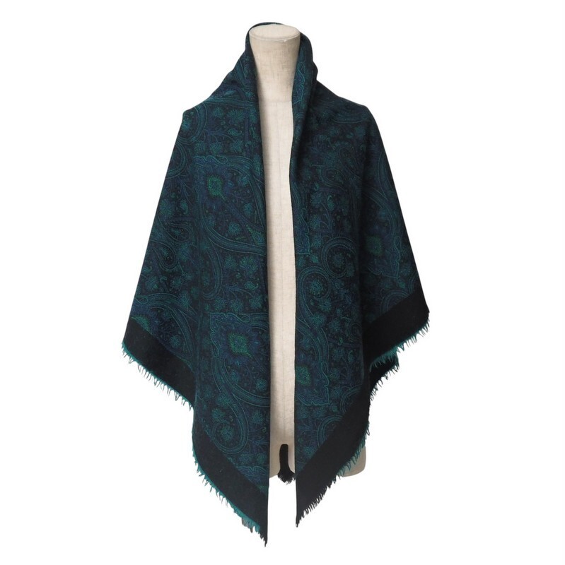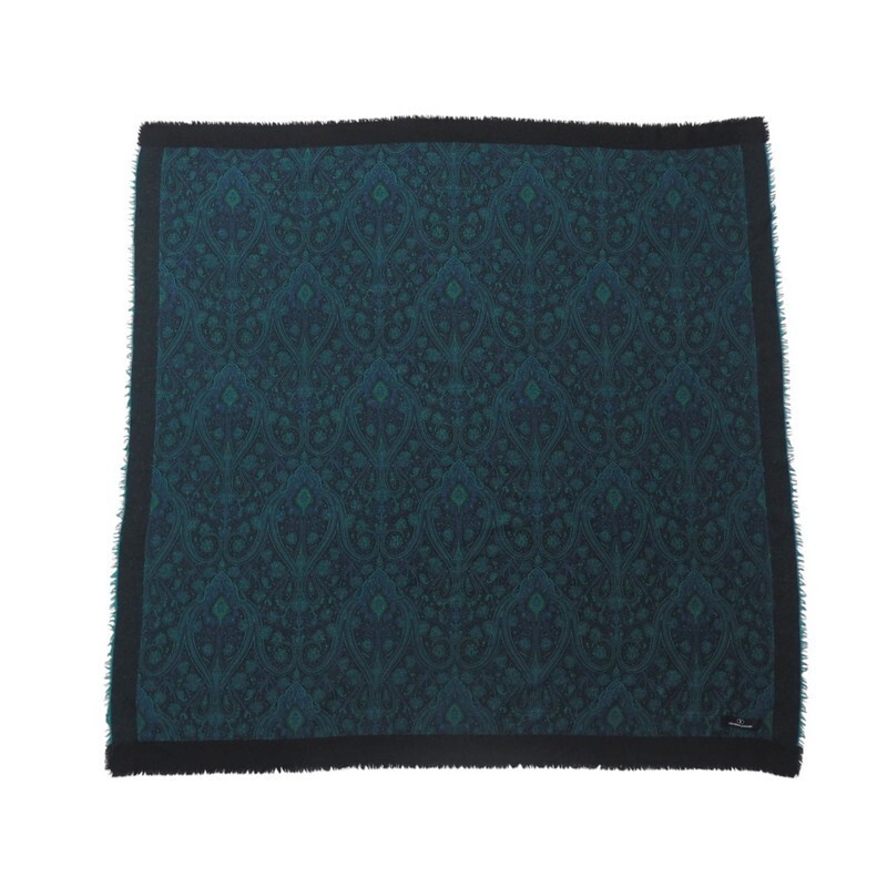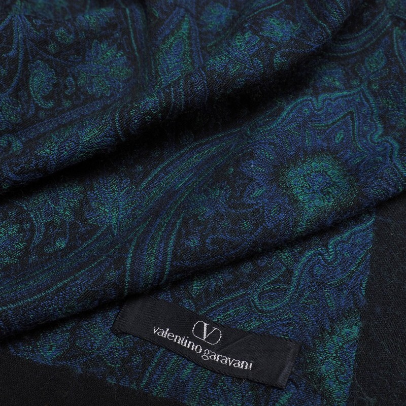 | TJ6517□ヴァレンティノ/Valentino Garavani ボタニカル柄 ウール 大判ストール スカーフ ショール 正方形 ブラック×グリーン×ブルー系 | |||