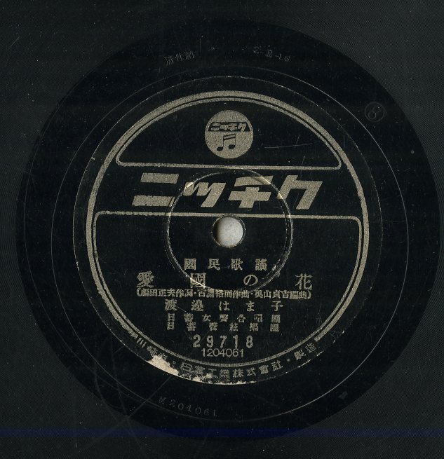 K00043759/SP/渡辺はま子/日蓄男声合唱団「愛國の花/海行かば(29718・国民歌謡)」