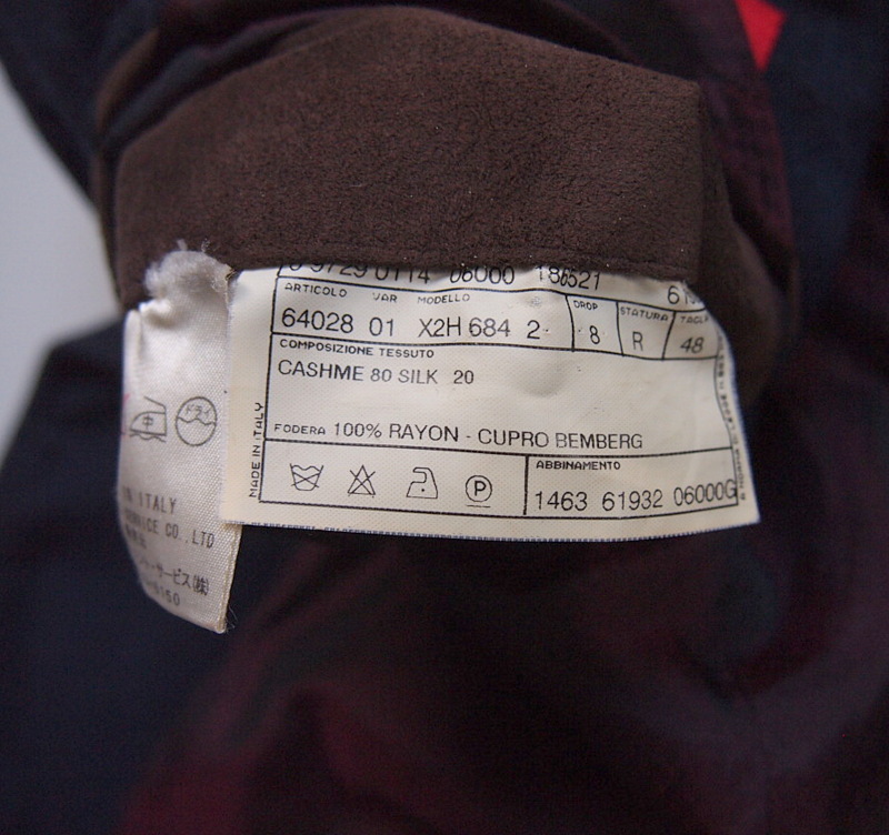 PAL ZILERI パルジレリ カシミヤシルク ジャケット 【サイズ】 48 実寸を参考にしてください。 【実寸】 肩幅:約46cm 身幅:約54cm 袖丈:約62cm 着丈:約76cm 誤差はご了承ください。 【素材】 画像の素材表示をご確認ください。 【状態】 画像のように右袖口に薄汚れ、内タグにほつれがあります。 他は特に気になるようなダメージはないです。 <サイズについて> ブランドや年代、国等によって表示サイズのサイズ感に違いがありますので、必ず記載の実寸をご確認ください。 見落としがないように確認はしておりますが、記載にないような細かなスレや薄汚れがある可能性もありますので、ご理解いただける方のみお願いいたします。 |