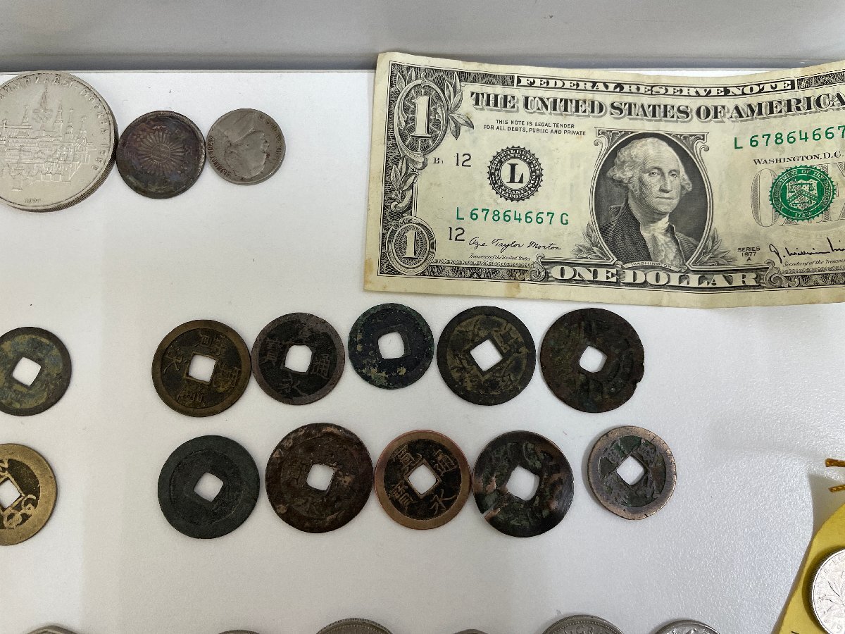 | 【B19237】古銭おまとめ 紙幣 硬貨 外国銭 日本等色々 1980年モスクワオリンピック記念 10ルーブル銀貨 経年劣化あり 他無選別 |
