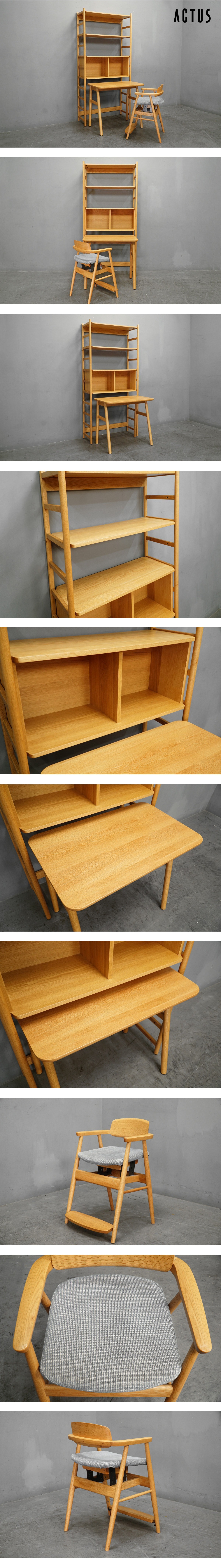 ◇ACTUS(アクタス)のRipia (リピア) デスク ハイシェルフ セットです。 アクタスが提案する「RIPIA(リピア)」デスクは、暮らしに寄り添うシンプルで美しいデザインが魅力のワークデスクです。無垢材の温かみを活かしながら、細身のスチール脚で軽やかさを演出。空間に溶け込むような控えめな佇まいは、北欧インテリアやナチュラルモダンな空間にぴったりです。コンパクトなサイズ感ながら、奥行きはしっかり確保されており、ノートパソコンや書類を広げても余裕のある作業スペースを実現。さらに、天板下には文具などを収納できる薄型のトレイが設けられており、デスク上をすっきり保てます。同シリーズで連結したり組み合わせれば、統一感のある機能的なワークスペースが完成。テレワークやお子様の学習机としてもおすすめです。デザイン性と実用性を兼ね備えたRIPIAデスクで、日常の作業時間をより快適に、より美しく。 チェアはアクタスの「LIFE チェア」。子ども時代から大人まで一生使える、無垢材のチェア。 成長に合わせて座面高が4段階に調節でき、学習に適する2度の前傾に調整できるエルゴノミクスチェアです。 参考新品価格(約):236,100円(デスク/48,000円+シェルフセット/132,000円+LIFEチェア/56,100円) |