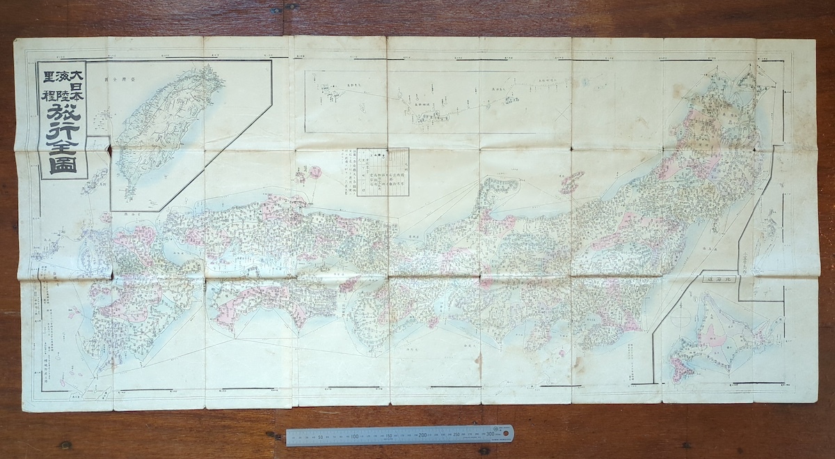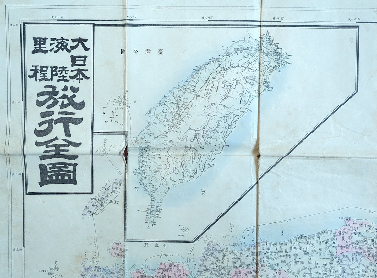 古地図 大日本海陸里程旅行全図 明治35年 台湾 中国 満州 支那事変 琉球 沖縄 古文書 鳥瞰図 資料 史料 古典籍 路線図 鉄道 汽車