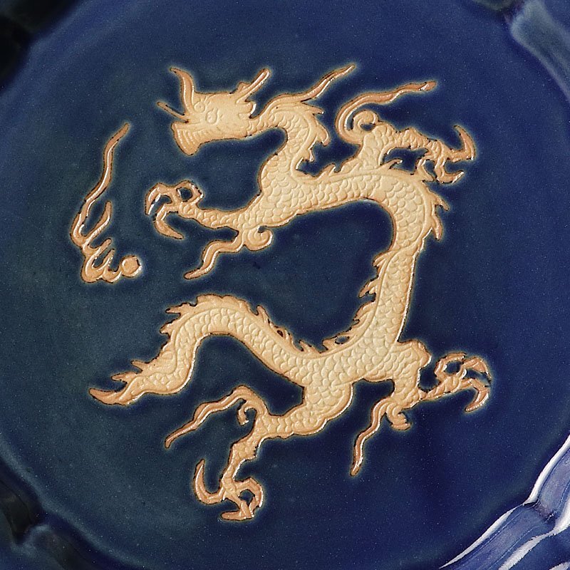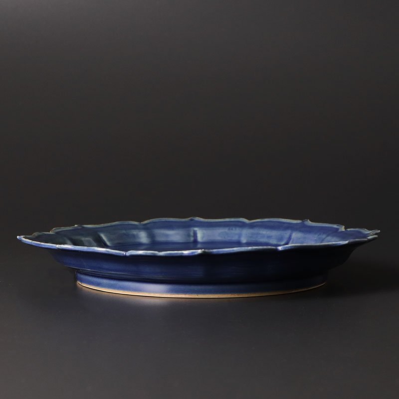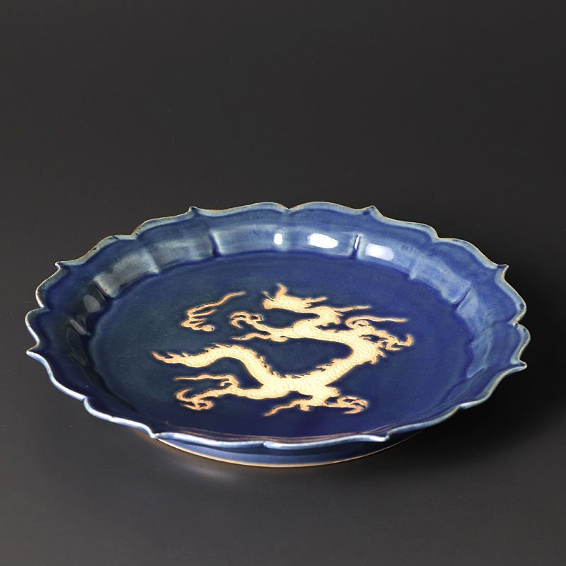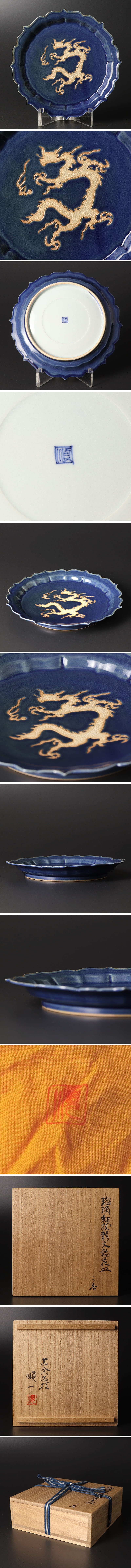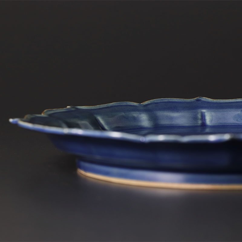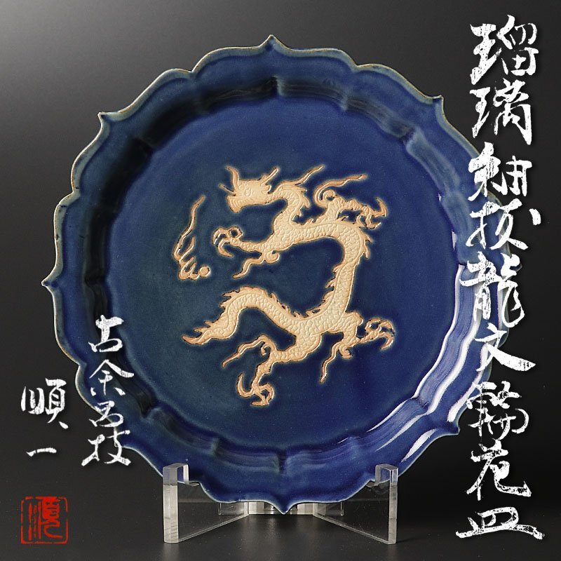 まるで夜空に龍が舞っているような美しい瑠璃釉の輪花皿です。 ★商品は川瀬順一(竹春)の作品である事を保証致します。 |