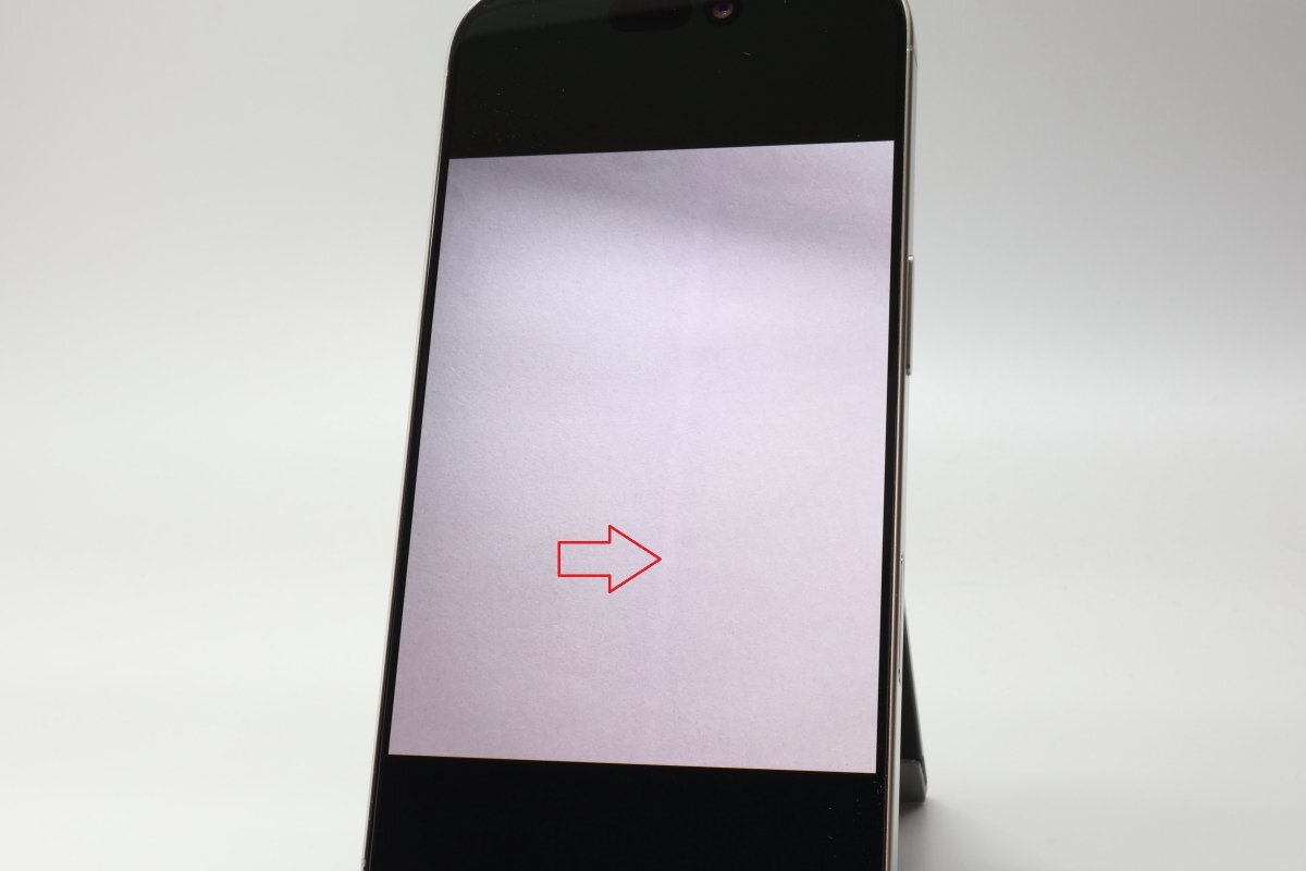 ・インカメラ撮影時、写真ともに縦(赤矢印)に光のラインが写り込みます(写真6 ※インカメラで撮影した写真を撮影してます)