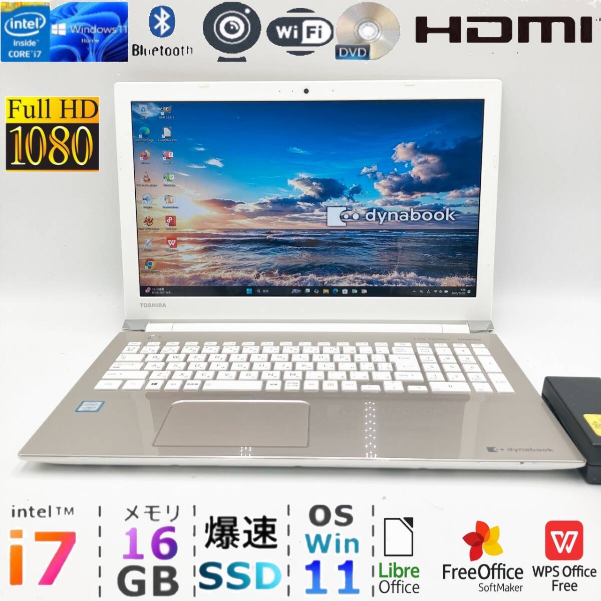 | 【配送商品の中身】 □ノートパソコン本体 (新品SSD、メモリ内蔵済み) □ACアダプタ □延長保証パンフレット 【スペック】 ■メーカー・型番:東芝 P1-T6KP-EG サテンゴールド ■インストールOS:最新版Windows11Home 64ビット ■CPU:Core i7-8550U第8世代(省電力ハイモデル) ■メモリ:DDR4:16GB(8GBx2) ■容量:爆速SSD:512GB ■光学ドライブ:DVD-RW ■装備 ●15.6型ワイド(16:9)FHD 広視野角 Clear SuperView TFTカラー液晶 (IPS〈In Plane Switching〉方式) (省電力LEDバックライト) 1,920×1,080ドット ●無線LAN対応 IEEE802.11a/b/g/n/ac準拠 有線LAN対応 ●USB3.0x2、2.0x2 ● HDMIポート搭載 モニターに出力して大画面での作業や動画視聴も可能 ●内蔵オンキョー製ステレオスピーカ ●Webカメラ搭載 ●Bluetooth搭載 ■動作確認