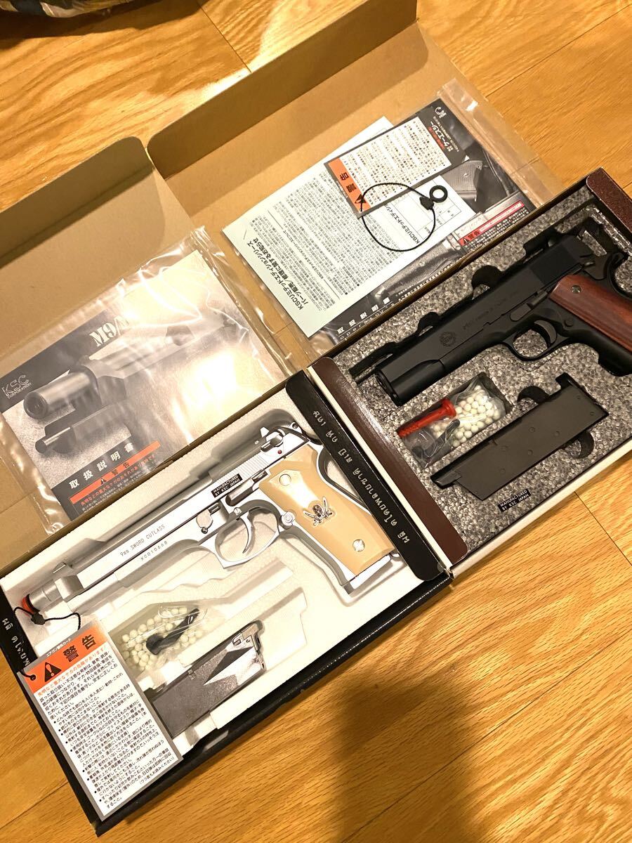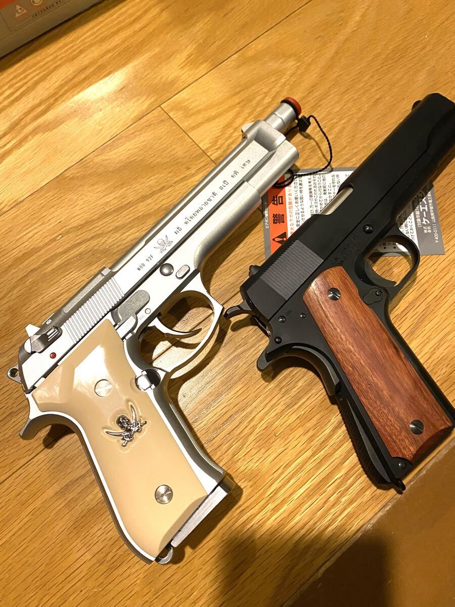 KSCのレヴィのソードカトラスとロベルタのインベルになります。ソードカトラスは新品でスペアマグ付きです。インベルは数回手に取ったぐらいです。グリップを木製グリップに交換してあります。