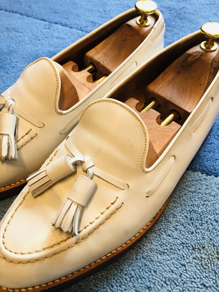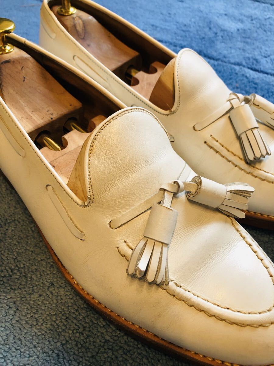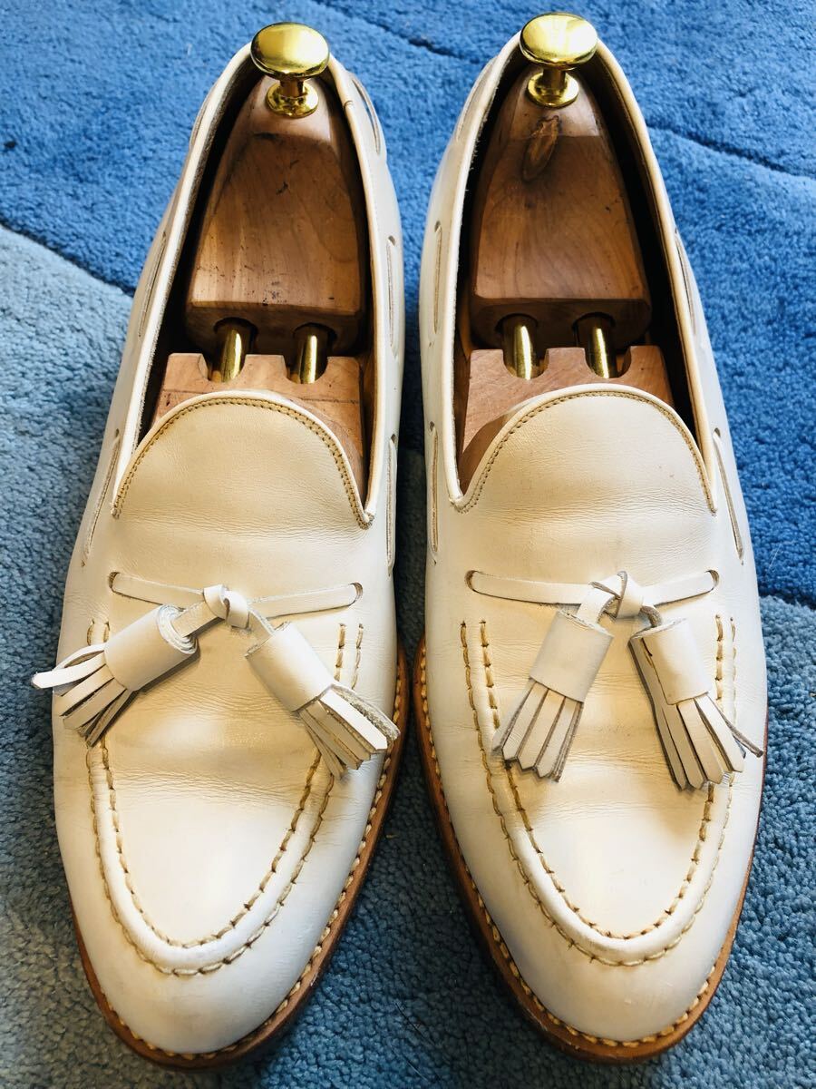 | 数ある商品の中からご覧頂き誠にありがとうございます! 商品名 リーガル タイプ タッセルローファー サイズ 25EE カラー ホワイト 状態 レベルは2 【5】新品に近い美品状態 【4】履きジワ・カカトの減りも少なく綺麗な状態 【3】一般的な中古品レベルの状態 【2】履きジワ・カカトの減りもある状態 【1】ボロボロ カジュアルシーンに最適なリーガルのタッセルローファーになります。一足は持っておきたいですね♪ ステインリムーバーでの汚れ落とし乳化性クリームの塗布ブラッシング拭き上げ という一連の靴磨きをしてあるため届いた日からすぐにご利用いただけます(^^)♪ ソールの割れを接着してあるため訳あり品となります。アッパーは良好ですし、普段履きには問題ないかと思います(^^) 使用回数も多くなく全体的に美品です★ シューキーパーは付属しませんのでご了承下さい。 不明点ございましたらご質問下さい。 管理No. | |||