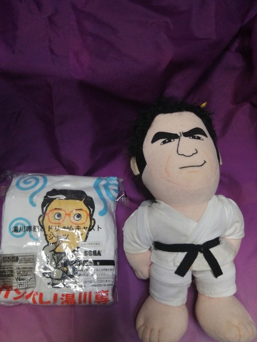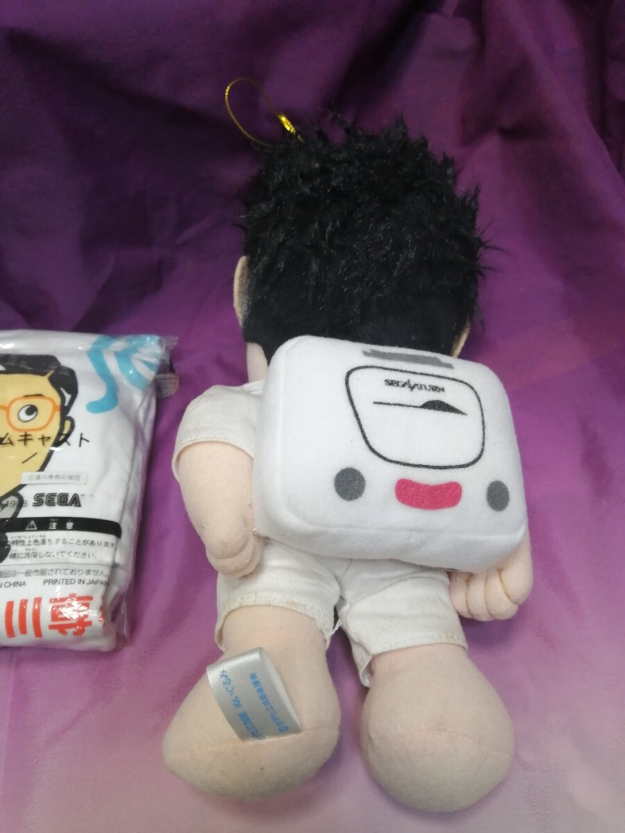 プライズ品です。使用せず保管していました。Tシャツは1度開封して中を確認しましたが、茶色いシミが少し有ります。ぬいぐるみの方のも少し黄ばみが有ります。それでも良いという方宜しくお願いします。Tシャツはフリーサイズです。ぬいぐるみの大きさは縦26cm横15cm位です。