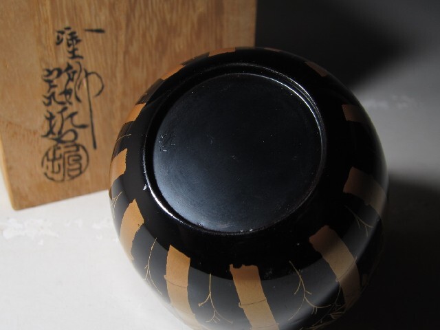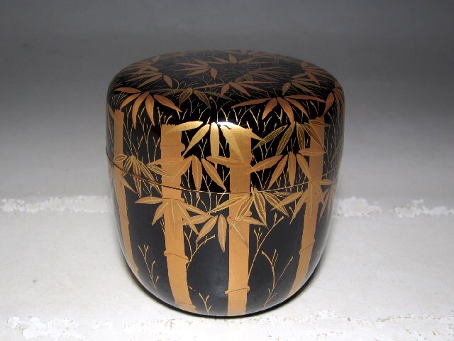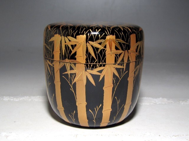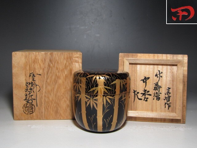 千家十職中村宗哲作の竹蒔絵中棗です。 気品ある姿の素晴らしい作品です。 蓋裏に表千家十二代惺斎の花押が入っている名品です。 底部に針銘があります。 【中村宗哲(なかむらそうてつ) 】 千家十職の塗師。 中村家は、400年近く続く塗師の家。 明治時代以降は茶道具の塗師専業となっている。 現当代は2006年十三代中村宗哲を襲名。 サイズ 直径7cm/高さ7cm(多少の誤差はお許しください) 状態 一見して疵やヒビ・直しは見られません。 骨董品という事をご勘案頂き、時代経過のスレや、小さな傷がある場合があるかもしれませんのでご承知置きください。 | |||
