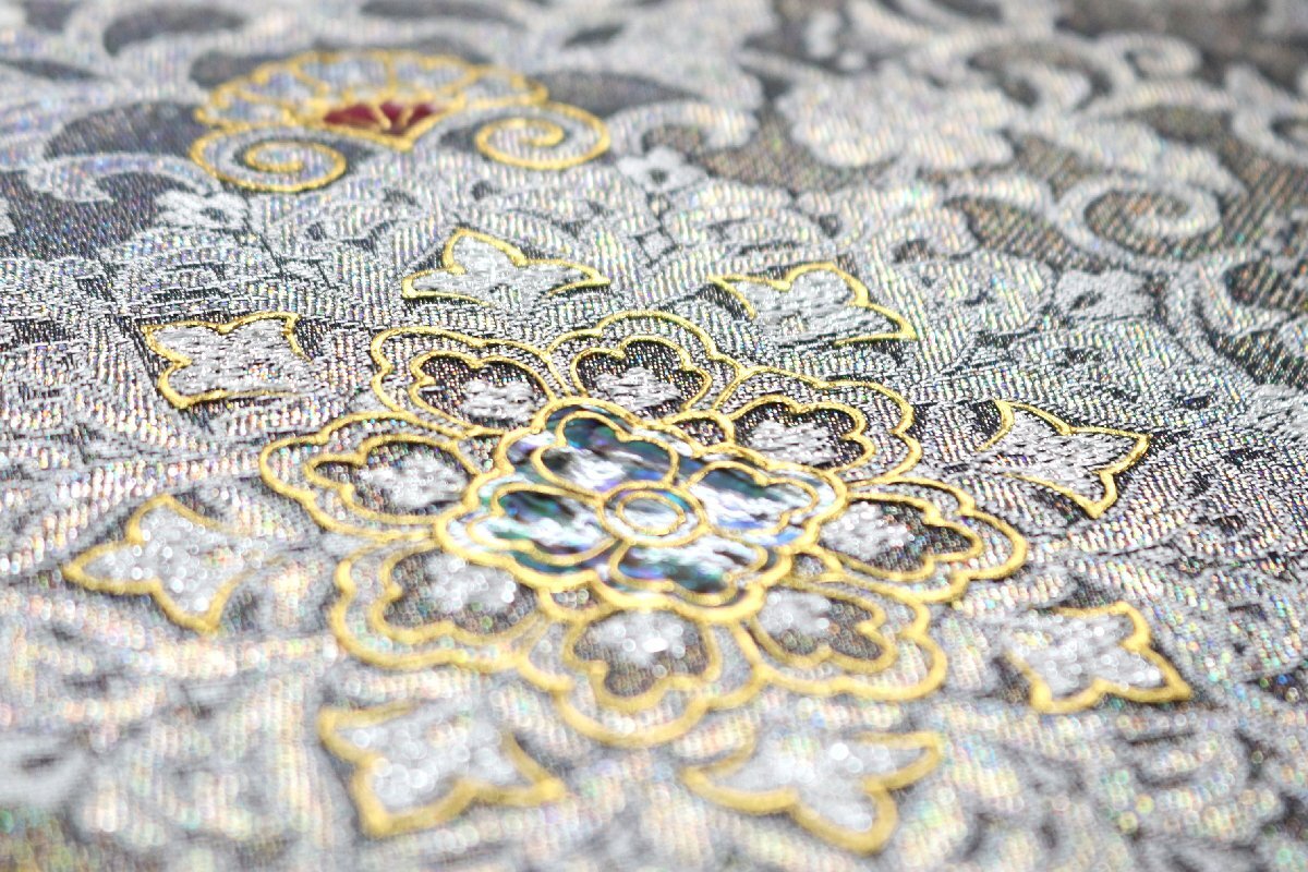 | ◆タイトル◆ | 和遊館 OFK2461 西陣 華翔苑 藤本仁 螺鈿 袋帯 華文 |
